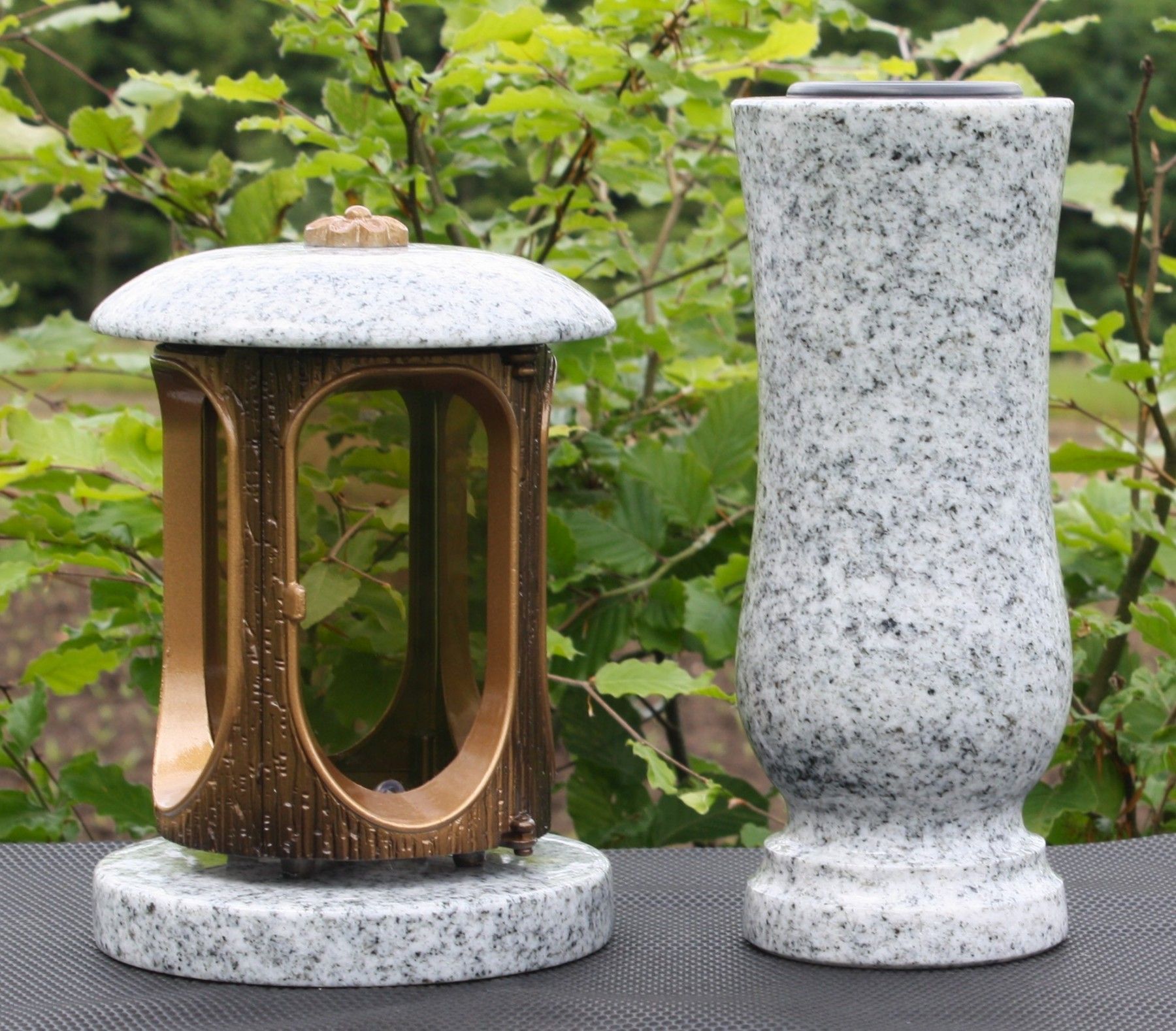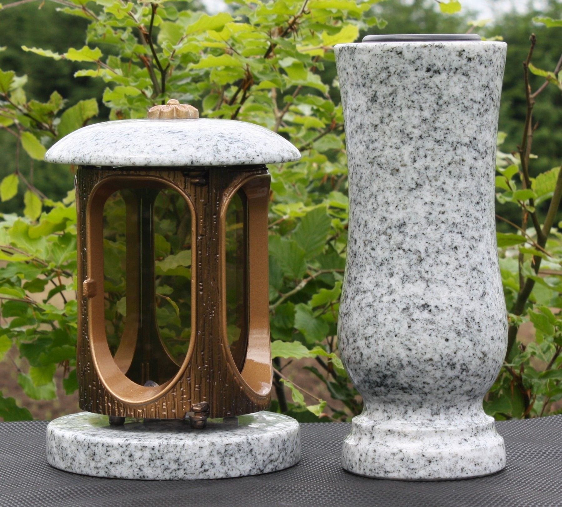 Laterne mit Vase Grablaterne aus Granit Viscont Grabschmuck