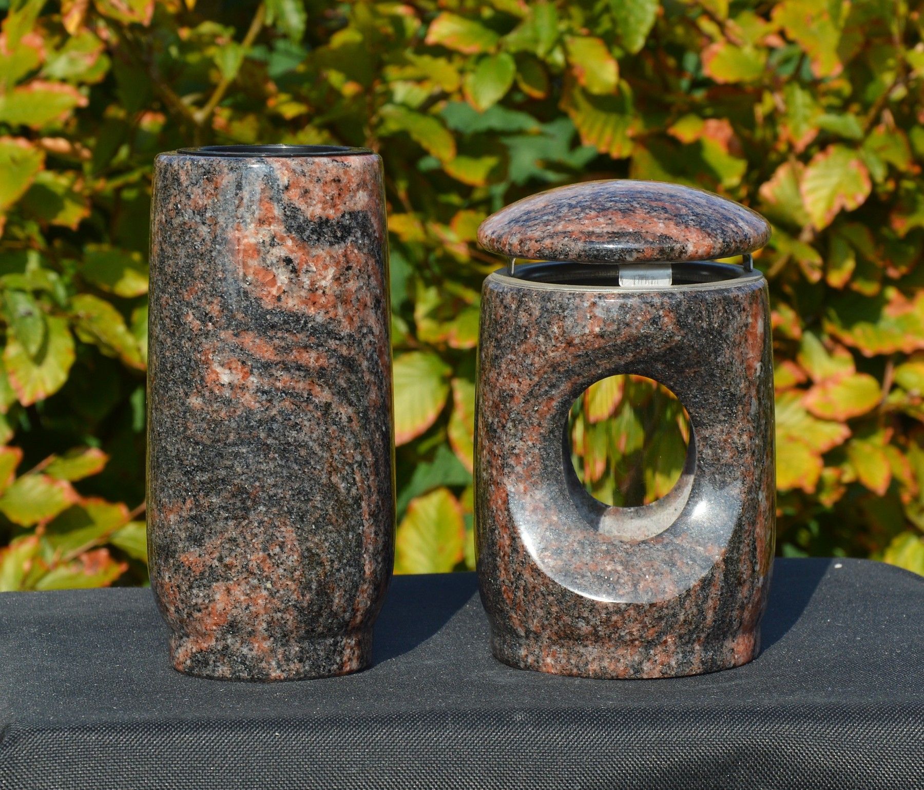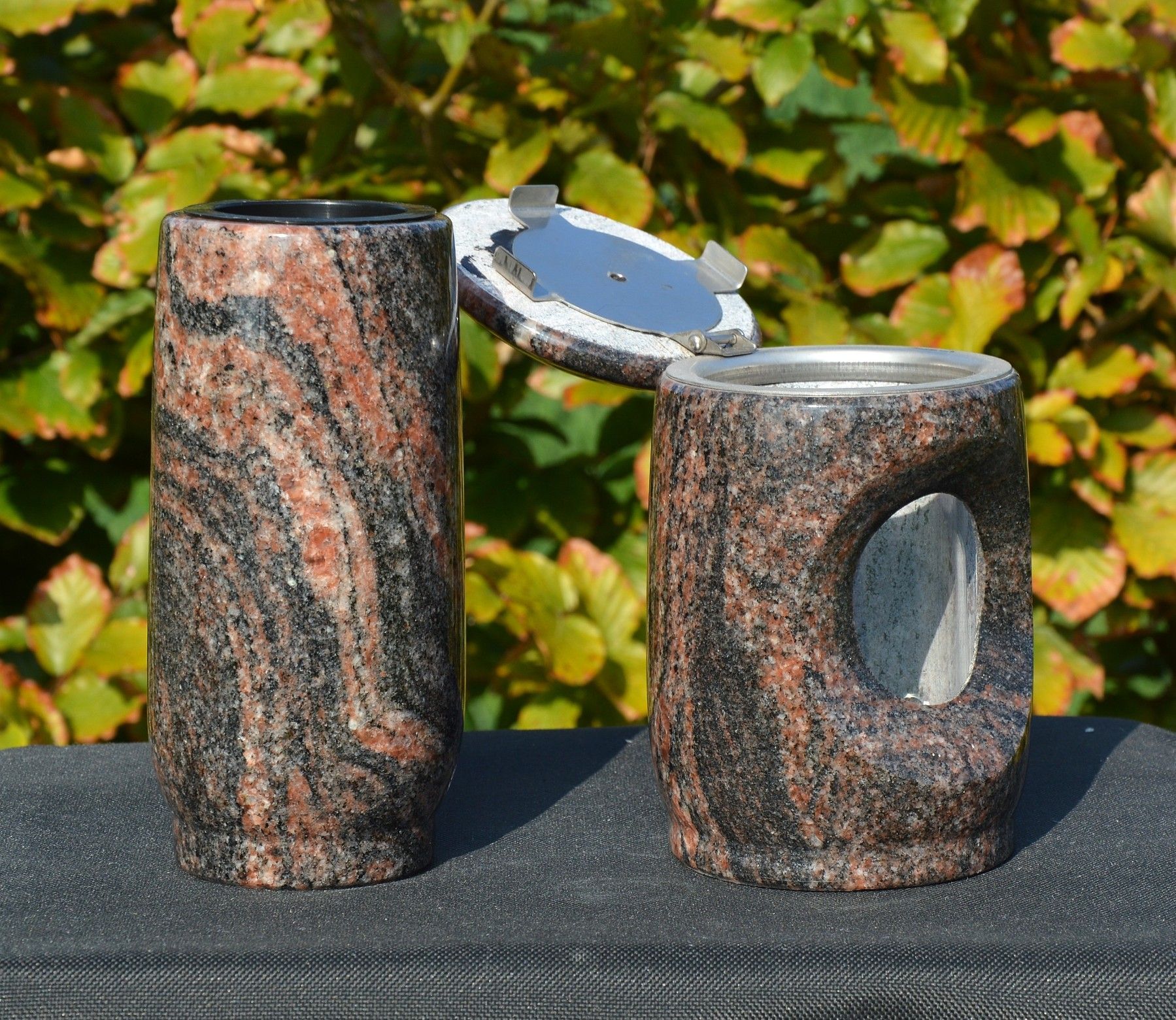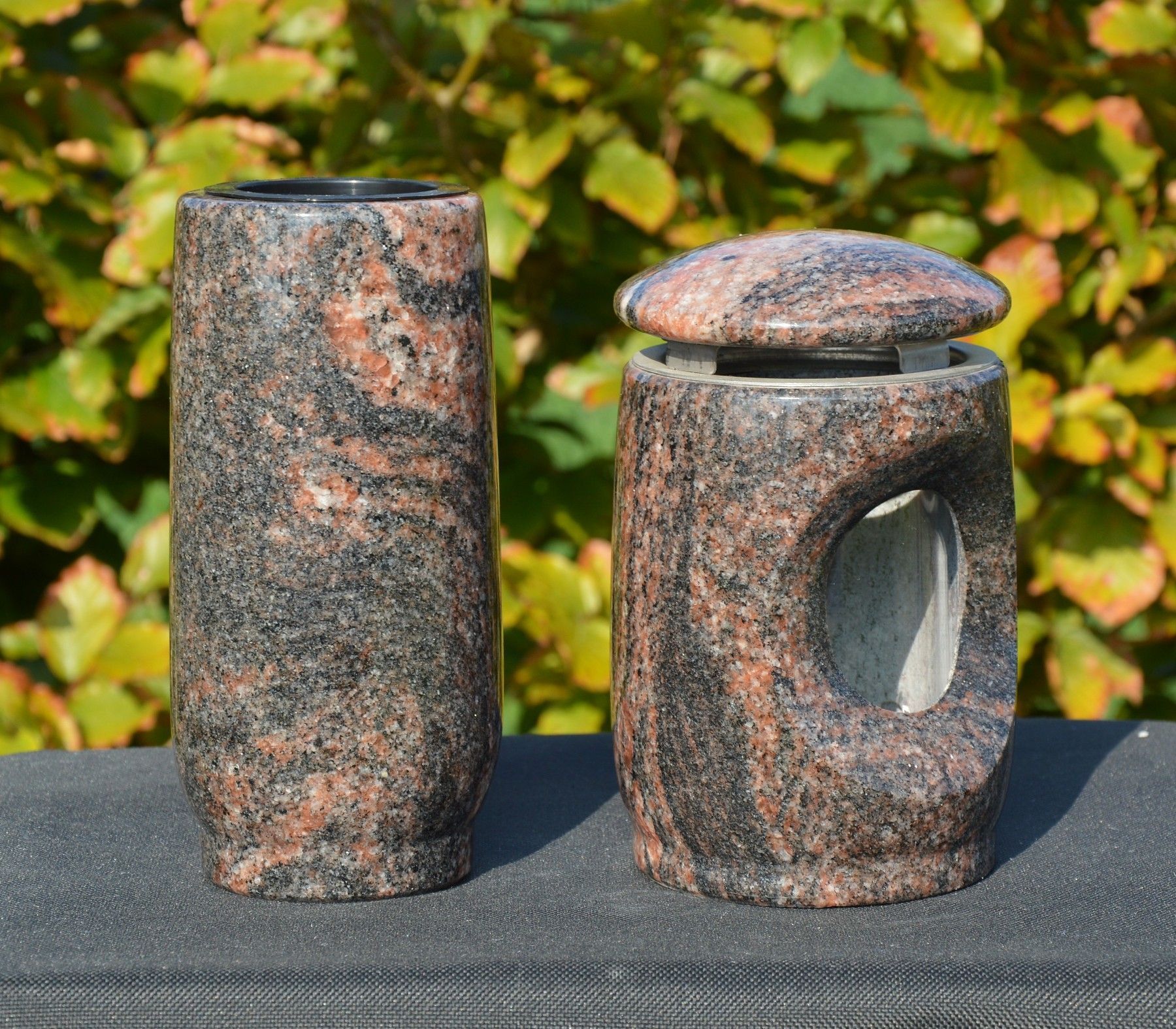 Laterne mit Vase Grablaterne für UrnenGrab aus Himalaya Granit Urnengrablaterne