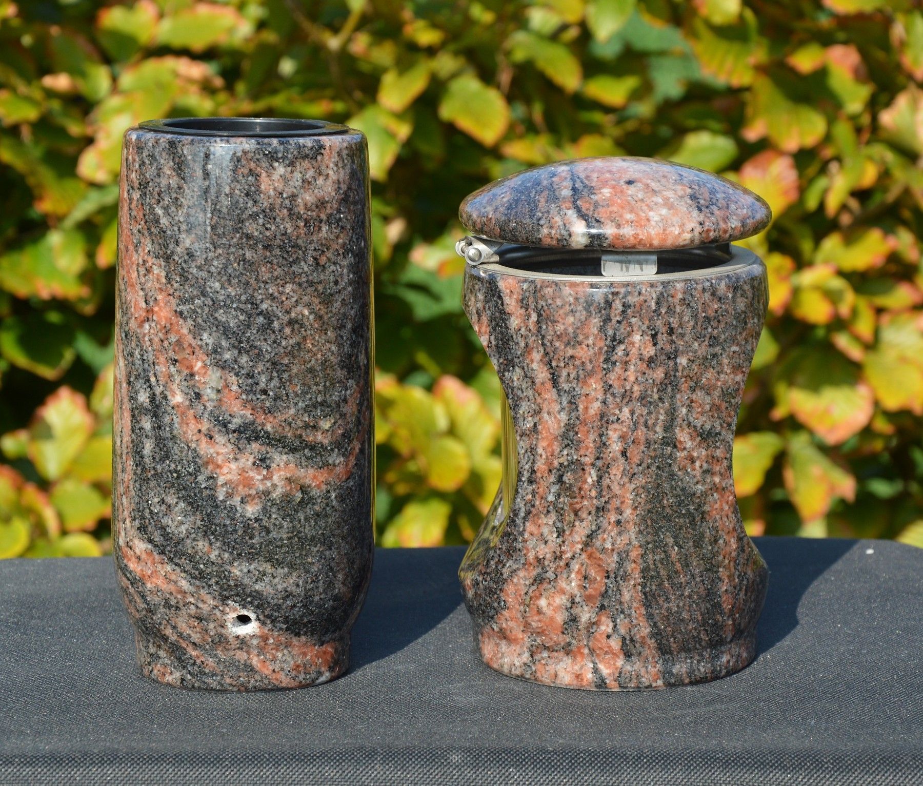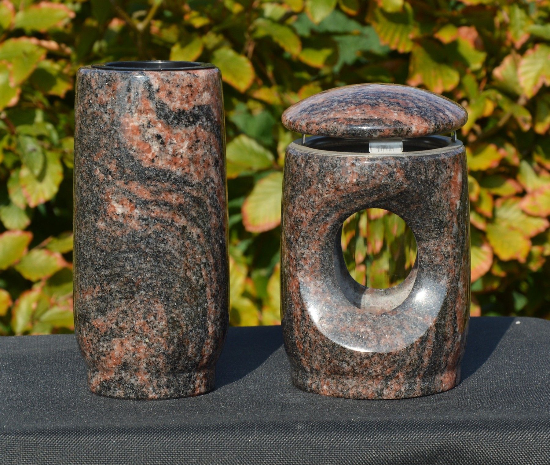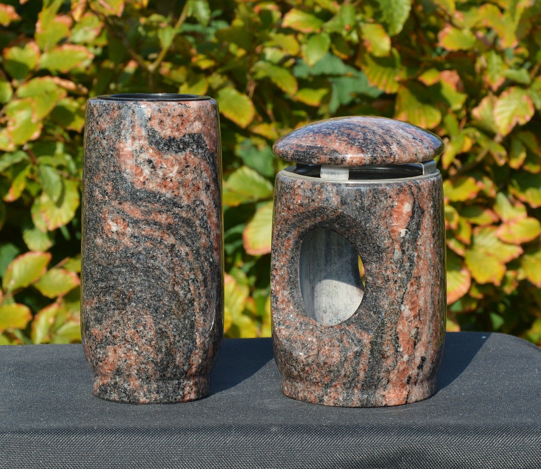 Laterne mit Vase Grablaterne für UrnenGrab aus Himalaya Granit Urnengrablaterne