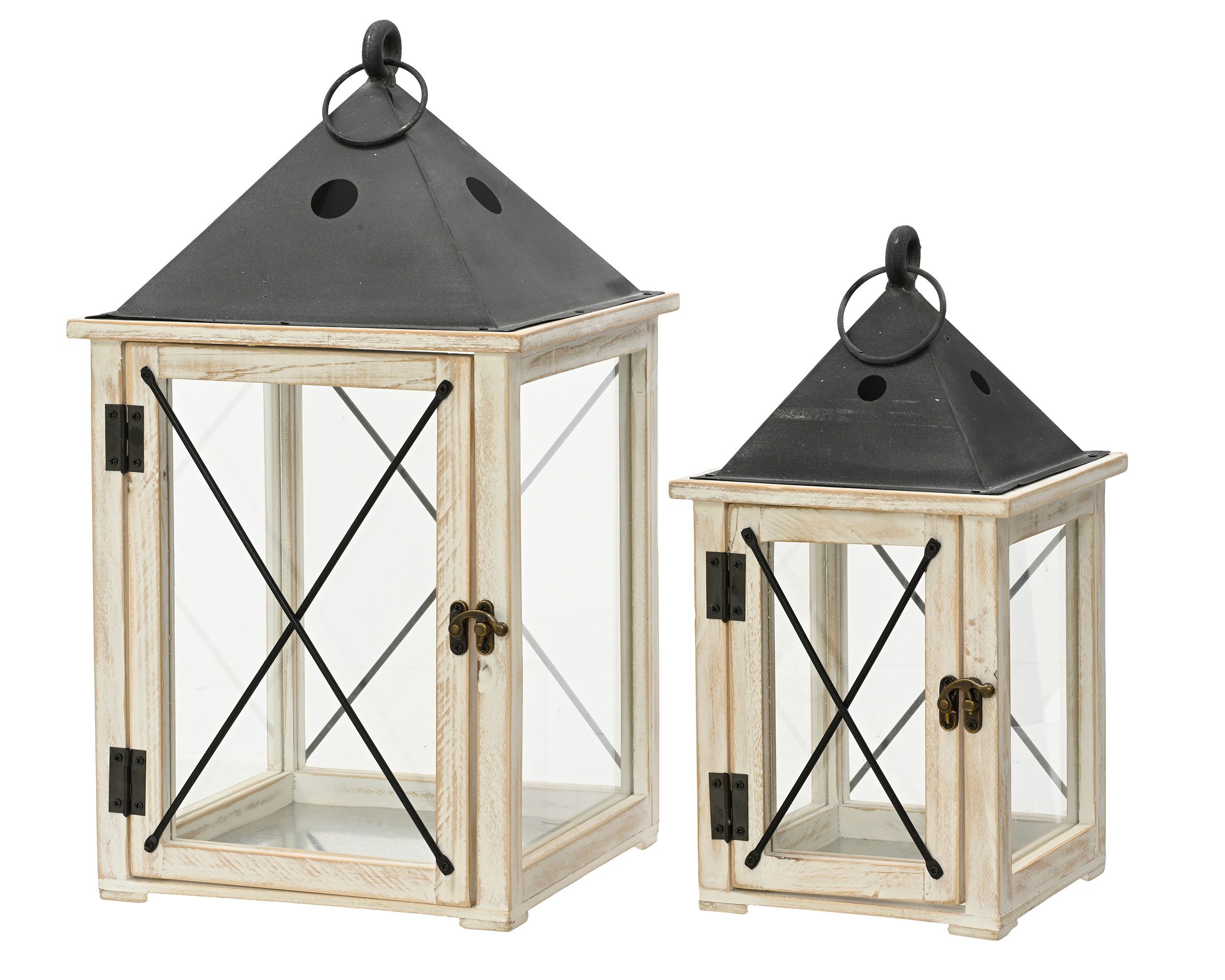 Laternen Holz FSC 100% Metall 24x46cm / 18x34,5cm mit Henkel 2er Set