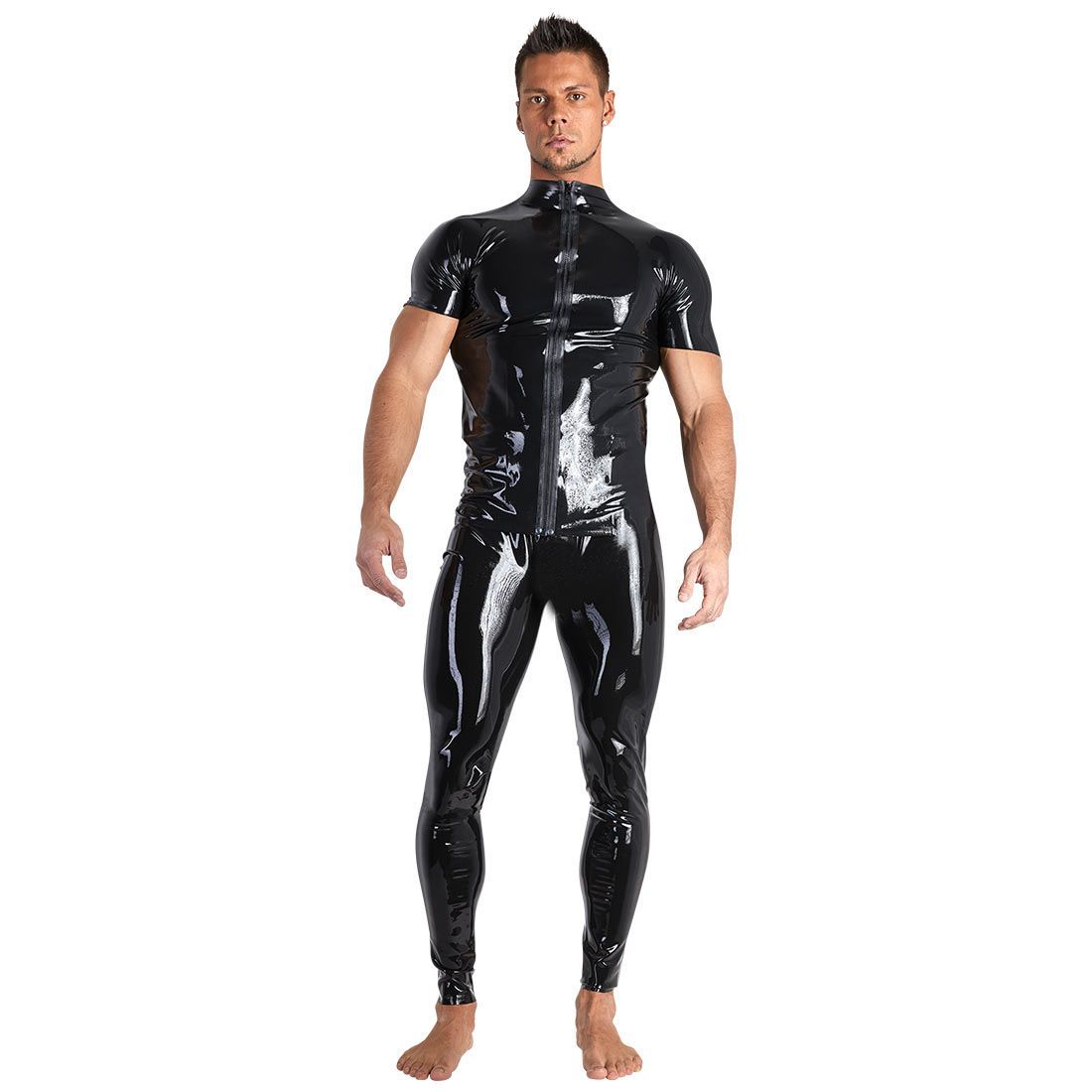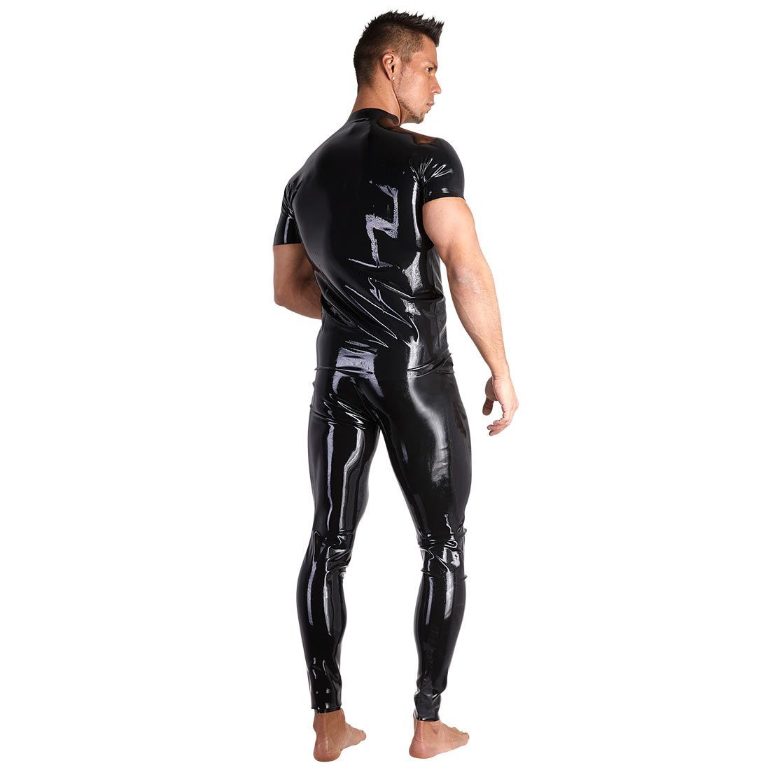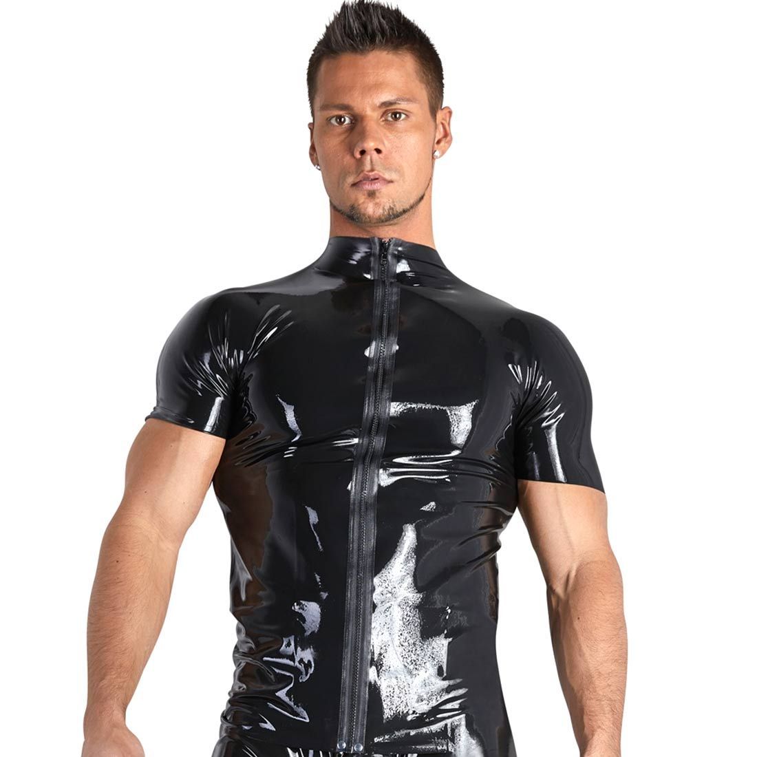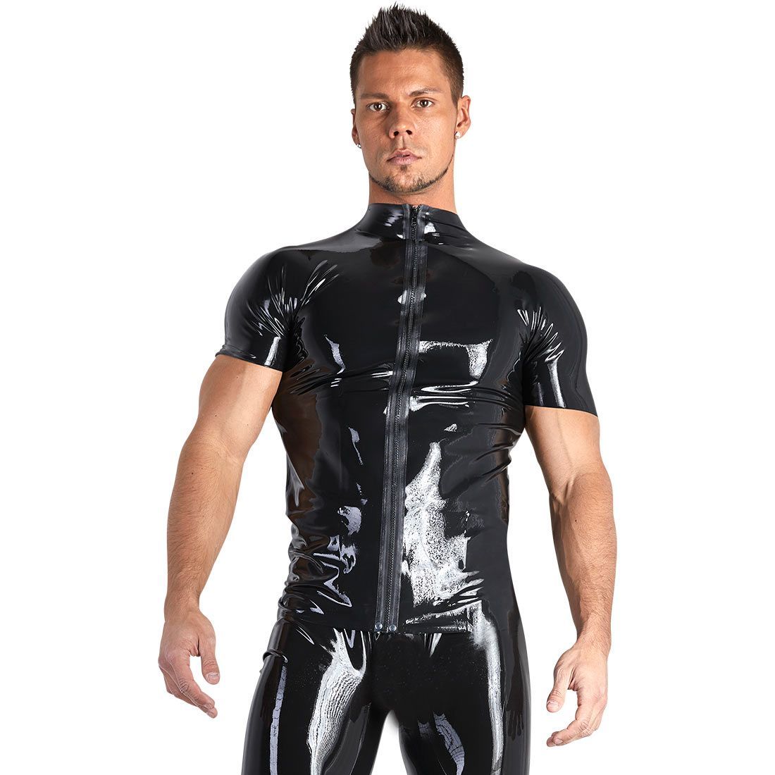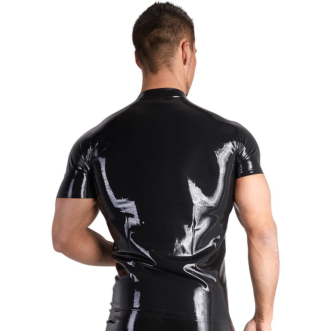 Latex Shirt Kurz Herren T-Shirt Stehkragen Zip Oberteil M L XL 2XL "Cesare"