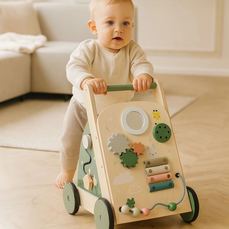 Lauflernwagen aus Holz mit Activity-Board, leise Räder, ab 1 Jahr