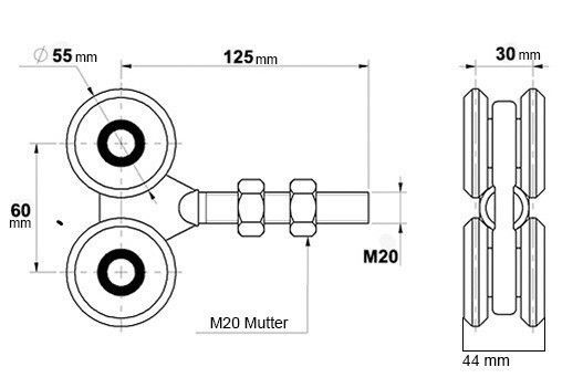 Laufwagen mit 4 Rollen bis 500 kg RC für 57 x 67 mm Profil