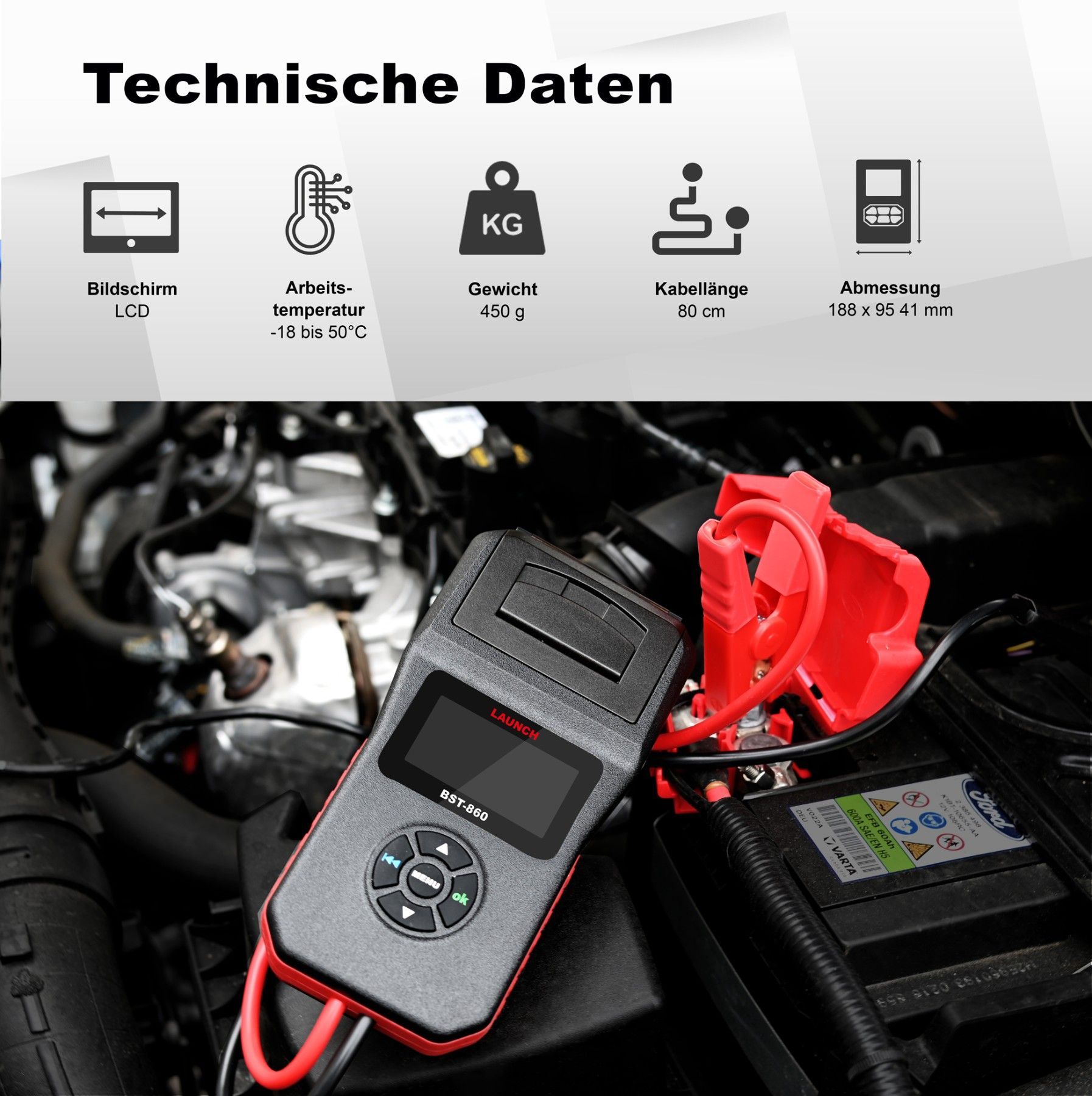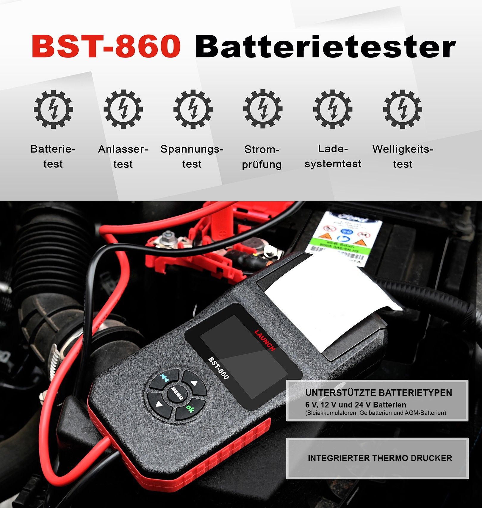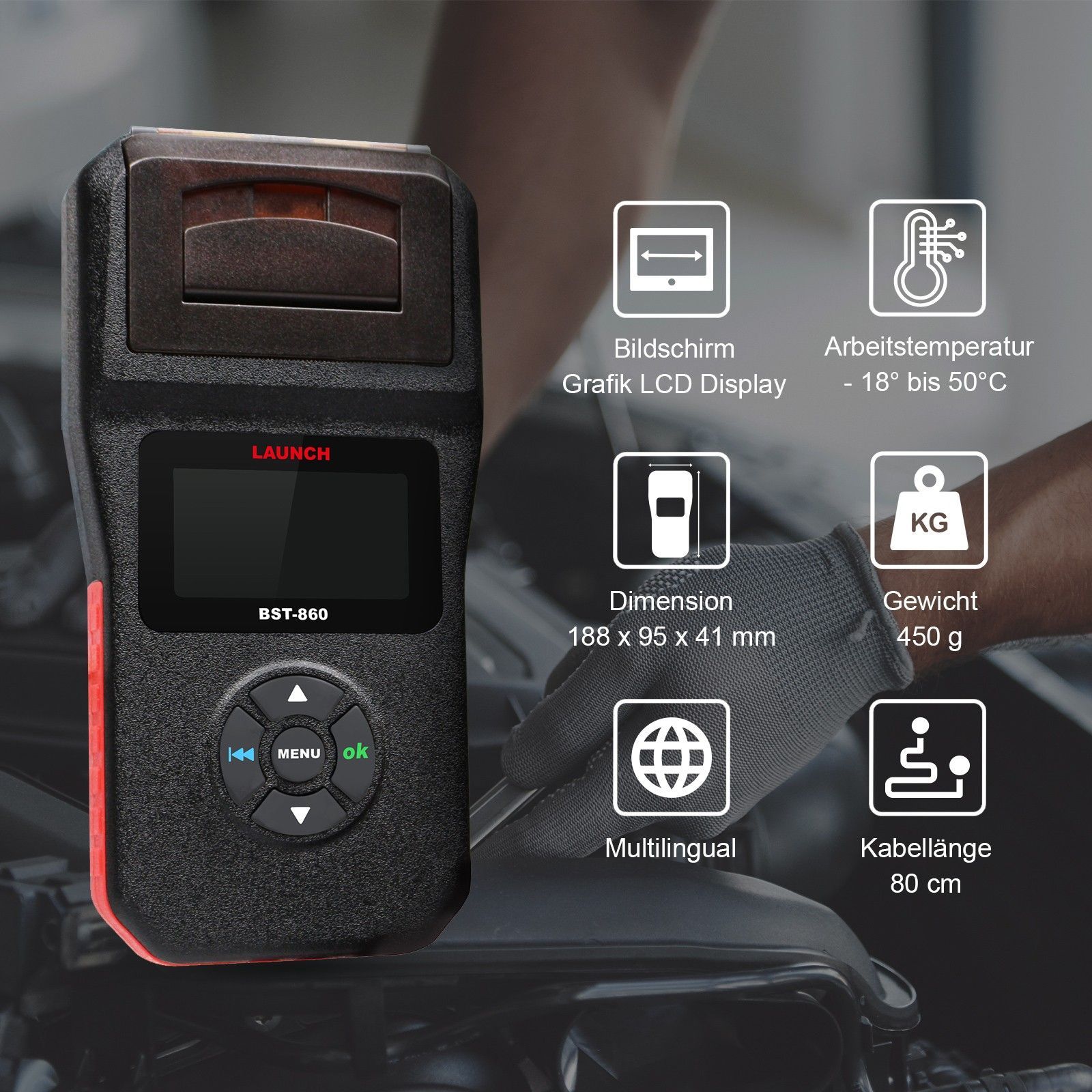 LAUNCH Europe BST-860 Batterietester KFZ/Digitale Anlasstester 12V 24V