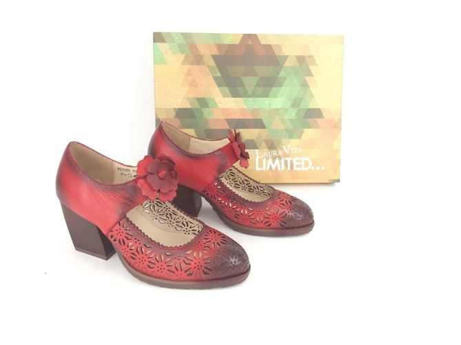 Laura Vita Limited Damen Pumps rot durchbrochen mit Blüte, 6,5 cm Absatz