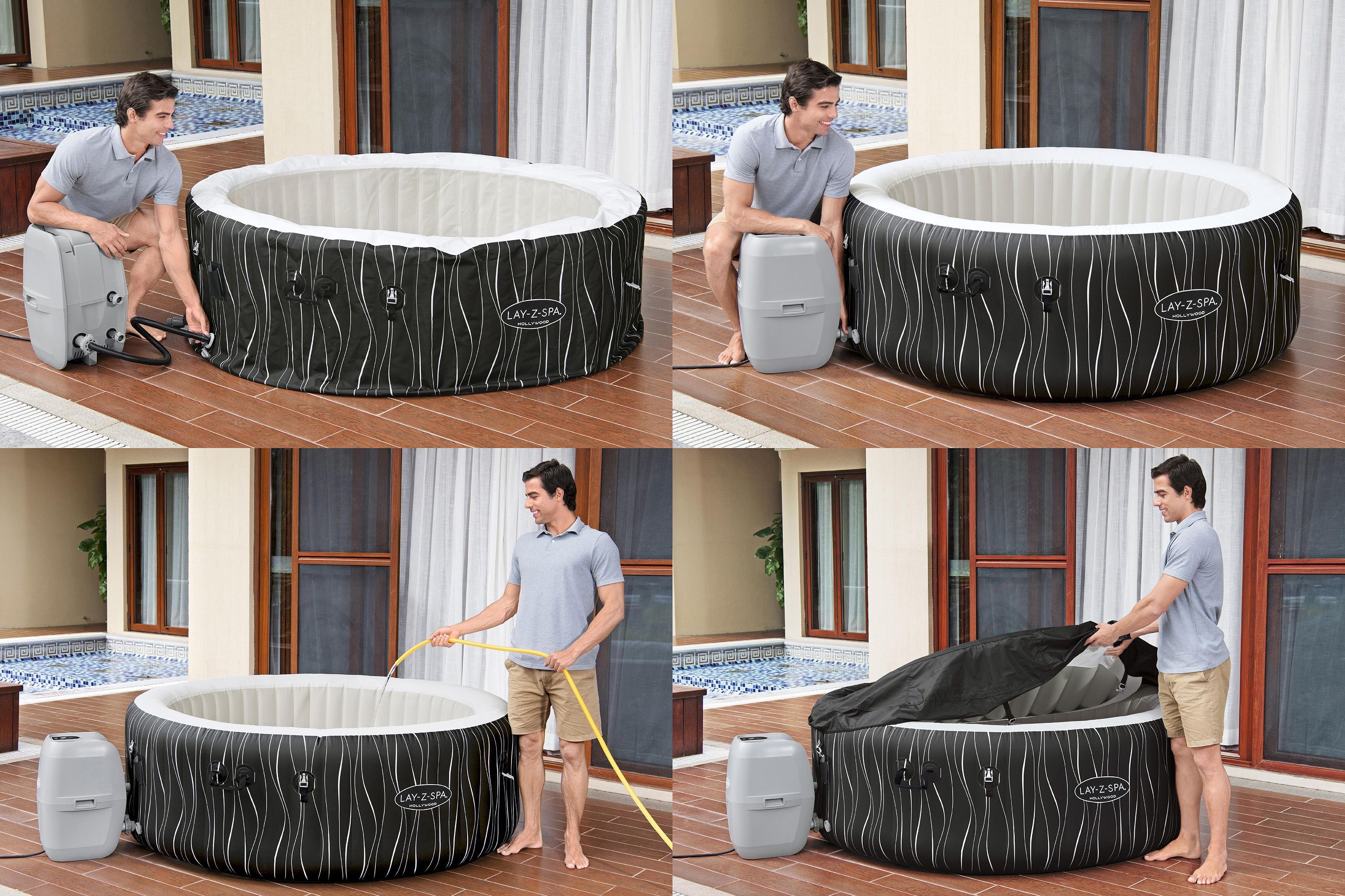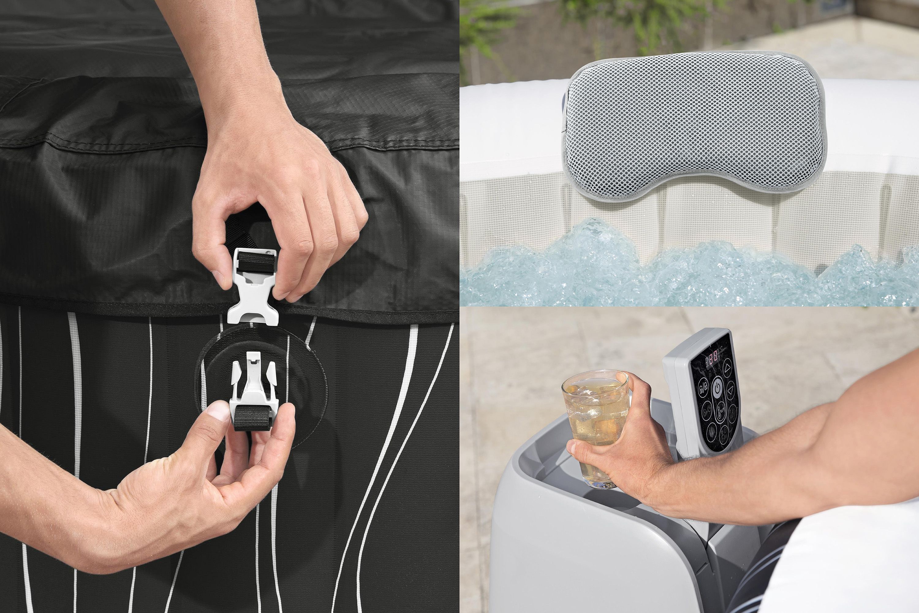 Hochleistungs-Heizsystem (Max. 4°C), Frostwächter-Technologie (Automatisches Heizen ab 6°C), Sprudelmassage (14 AirJet™ -Düsen) mit warmer Luft, Kartuschenfiltersystem (Durchflussrate 1.325 l/h)