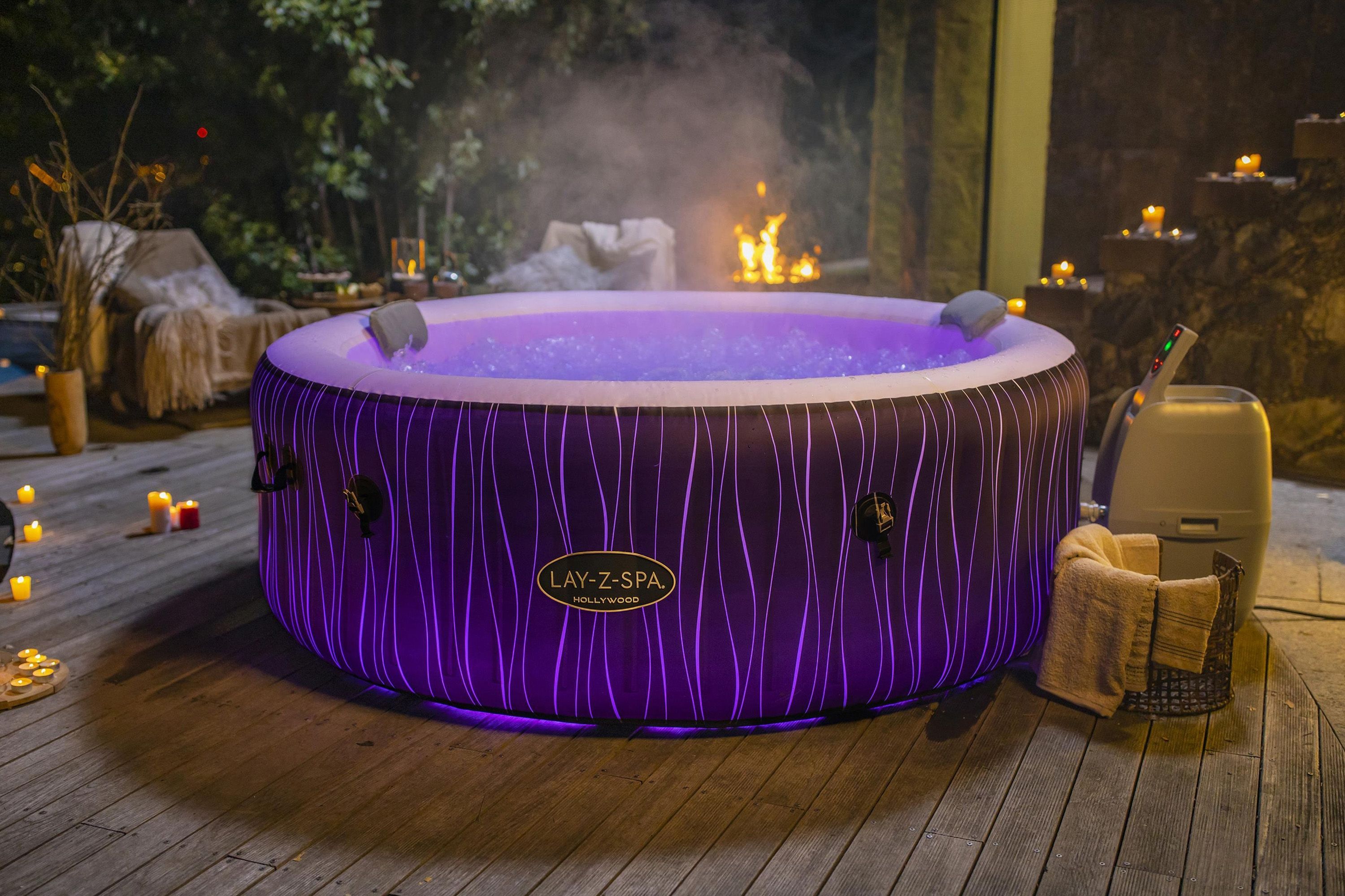 Für 6 P. , Ø196 x 66 cm, Innen: Ø148 cm, rund, 3-lagiges DuraPlus™, I-Beam-Konstruktion, Wasserkapazität: 98 l / Füllgewicht: 937 kg, LED-Design mit Farbwechsel, Boden in Kieselmosaik-Optik
