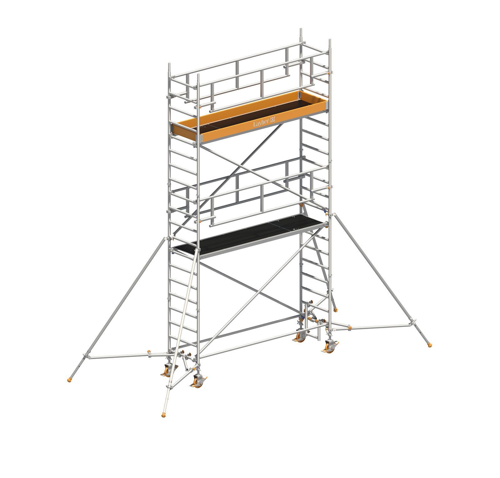 Layher Layher Rollgeruest Uni Standard P2 Safety Plus mit Doppelgelaender und Gerueststuetz