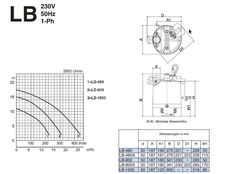 Pumpen-Shop-24.de Fördern Sie Wasser mit unseren Pumpen! LB-480 Tsurumi Schmutzwasserpumpe LB-480 Tsurumi Schmutzwasserpumpe ist eine kleine, robuste und leitungsstarke Schmutzwasserpumpe mit vielfältigem Einsatzmöglichkeiten für den professionellen Bereich. Technische Daten: Nennspannung: 230 V Nen