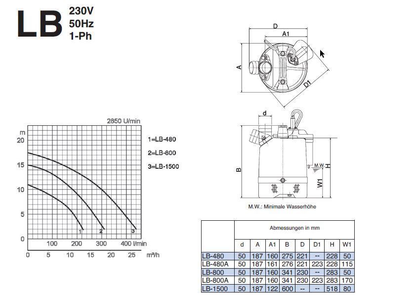 Pumpen-Shop-24.de Fördern Sie Wasser mit unseren Pumpen! LB-800A Tsurumi Schmutzwasserpumpe LB-800A Tsurumi Schmutzwasserpumpe ist eine kleine, robuste und leitungsstarke Schmutzwasserpumpe mit vielfältigem Einsatzmöglichkeiten für den professionellen Bereich. Technische Daten: Nennspannung: 230 V N