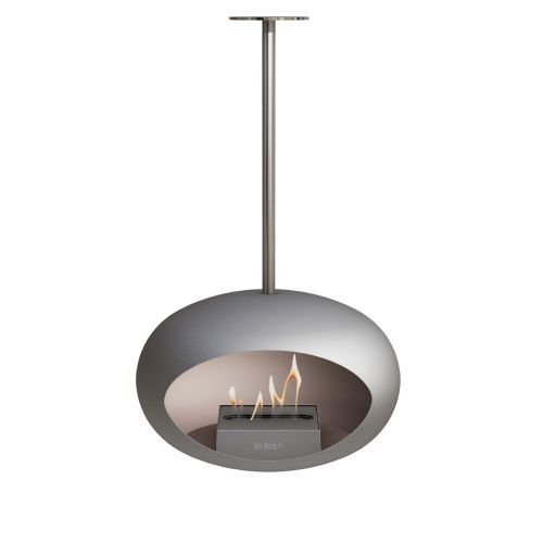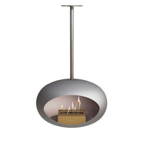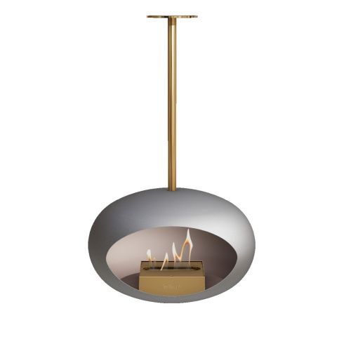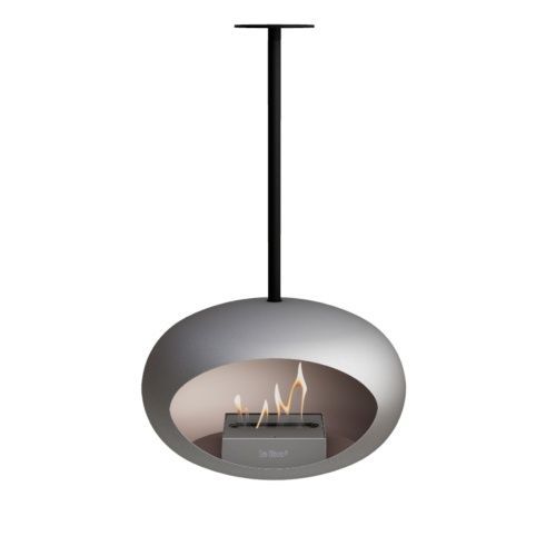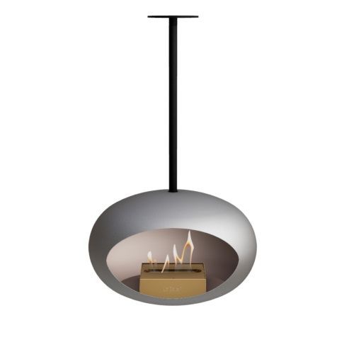 Der Le Feu Sky Bioethanol-Kamin schwebt elegant von der Decke, ist 360° drehbar, CO?-neutral & ohne Schornstein – für stilvolle Wärme drinnen & draußen
