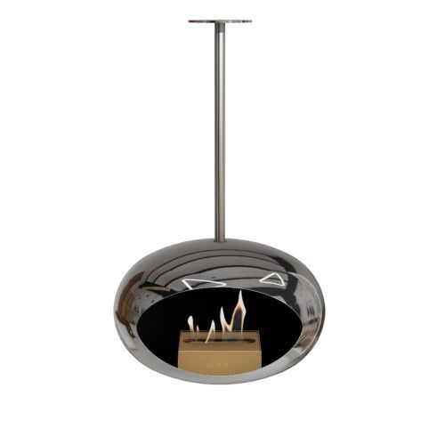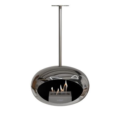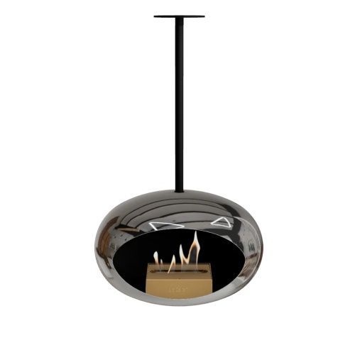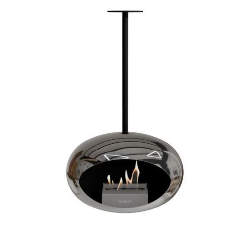 Der Le Feu Sky Bioethanol-Kamin schwebt elegant von der Decke, ist 360° drehbar, CO?-neutral & ohne Schornstein – für stilvolle Wärme drinnen & draußen