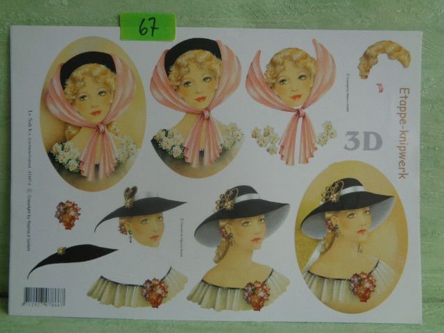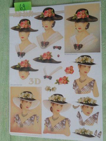 Le Suh 3D Bogen Damen Frauen mit Hut Kopfbedeckung Portraits Retro Vintage