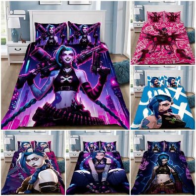 League of Legends Jinx Bettbezug Kissenbezuge 2/3pc Bettwasche-Set Single Double