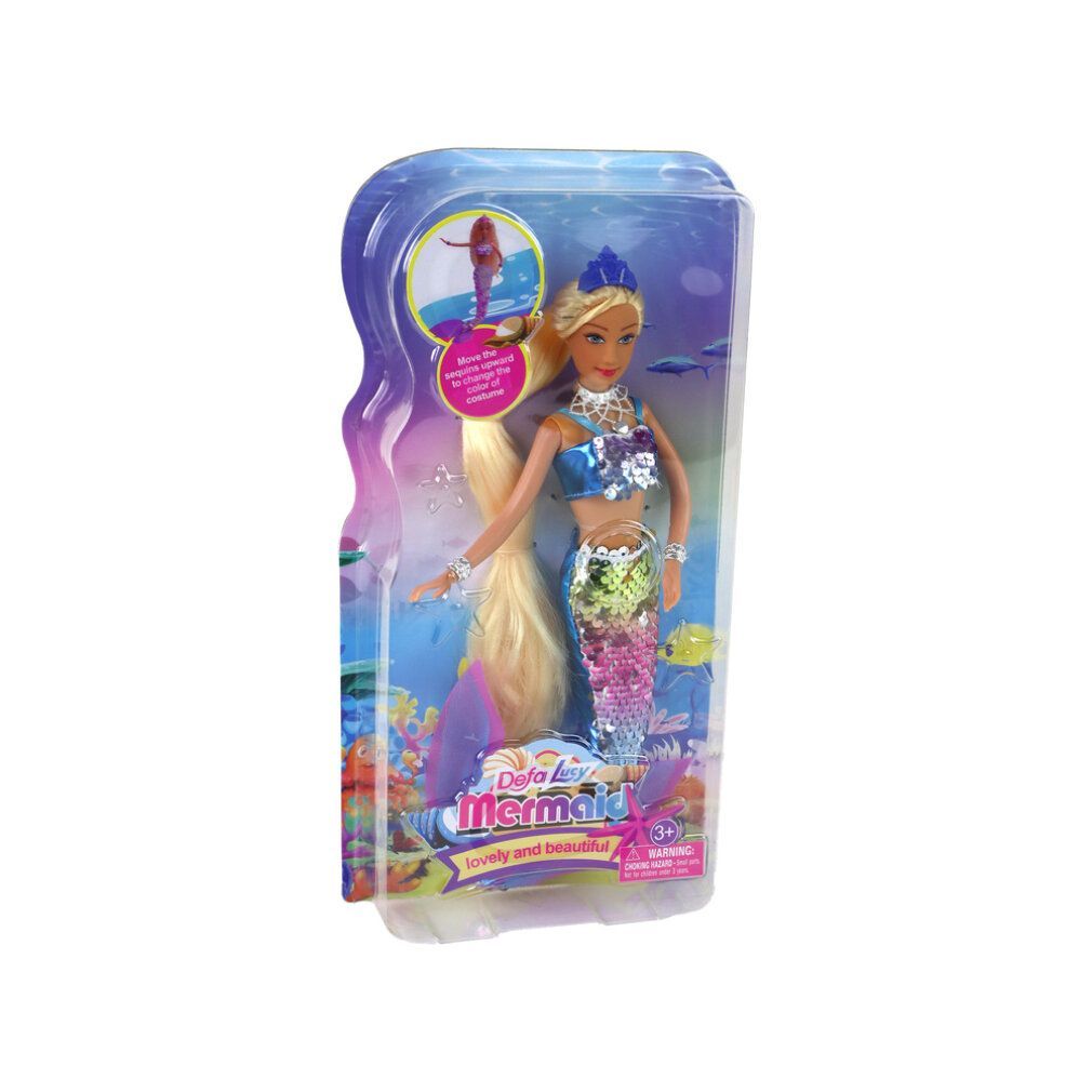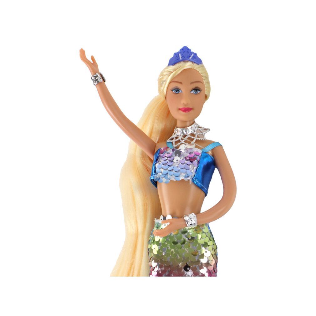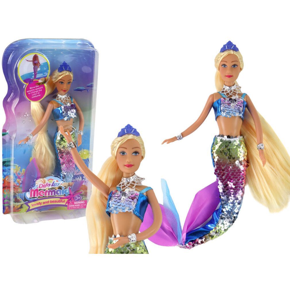 Lean Toys Blaue Meerjungfrau Puppe Lange Blonde Haare Meerjungfrau Schwanz Pailletten