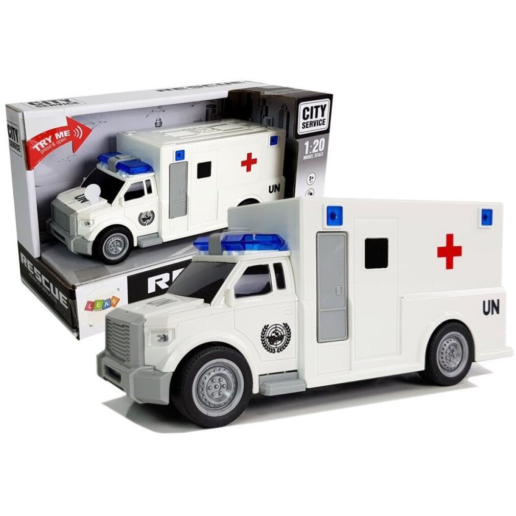 Lean Toys Friktionsantriebsauto Krankenwagen Weiß 1:20 mit Sound
