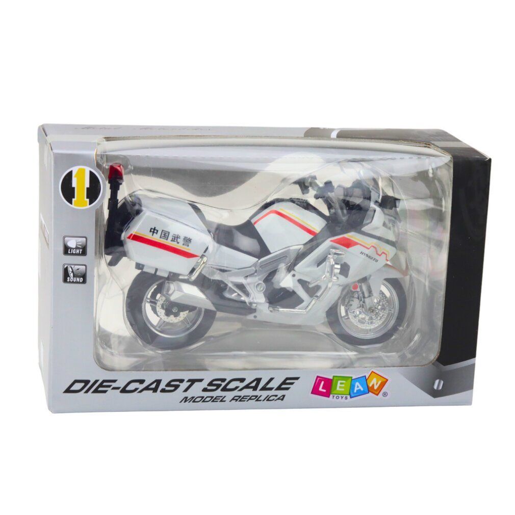 Lean Toys Metall Motorrad Lichter Geräusche Weiß Rot Gelb Linien 1:12