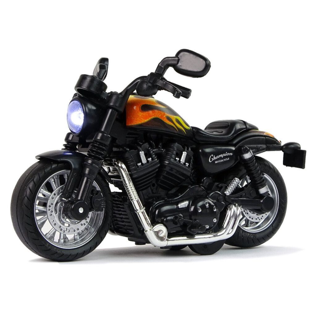 Lean Toys Motocykl Champion Czarny 1:14 Nap?d Pull-Back D?wi?k ?wiat?a