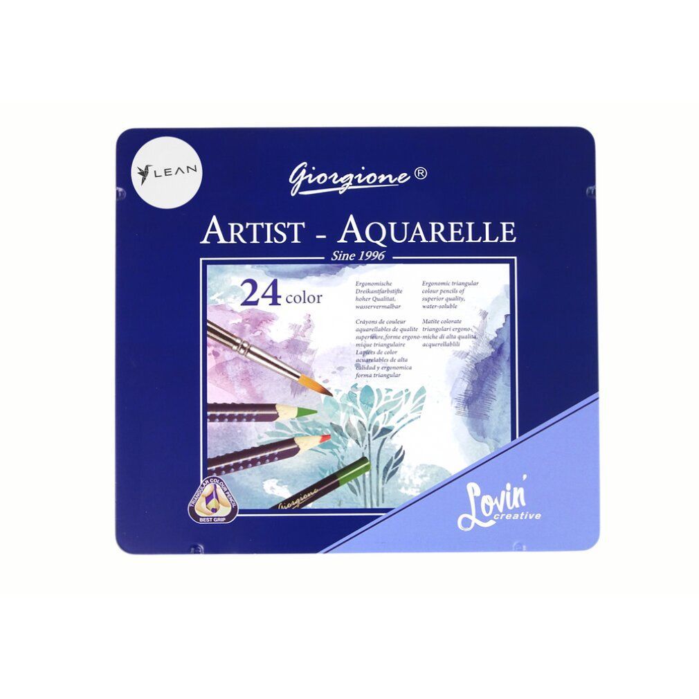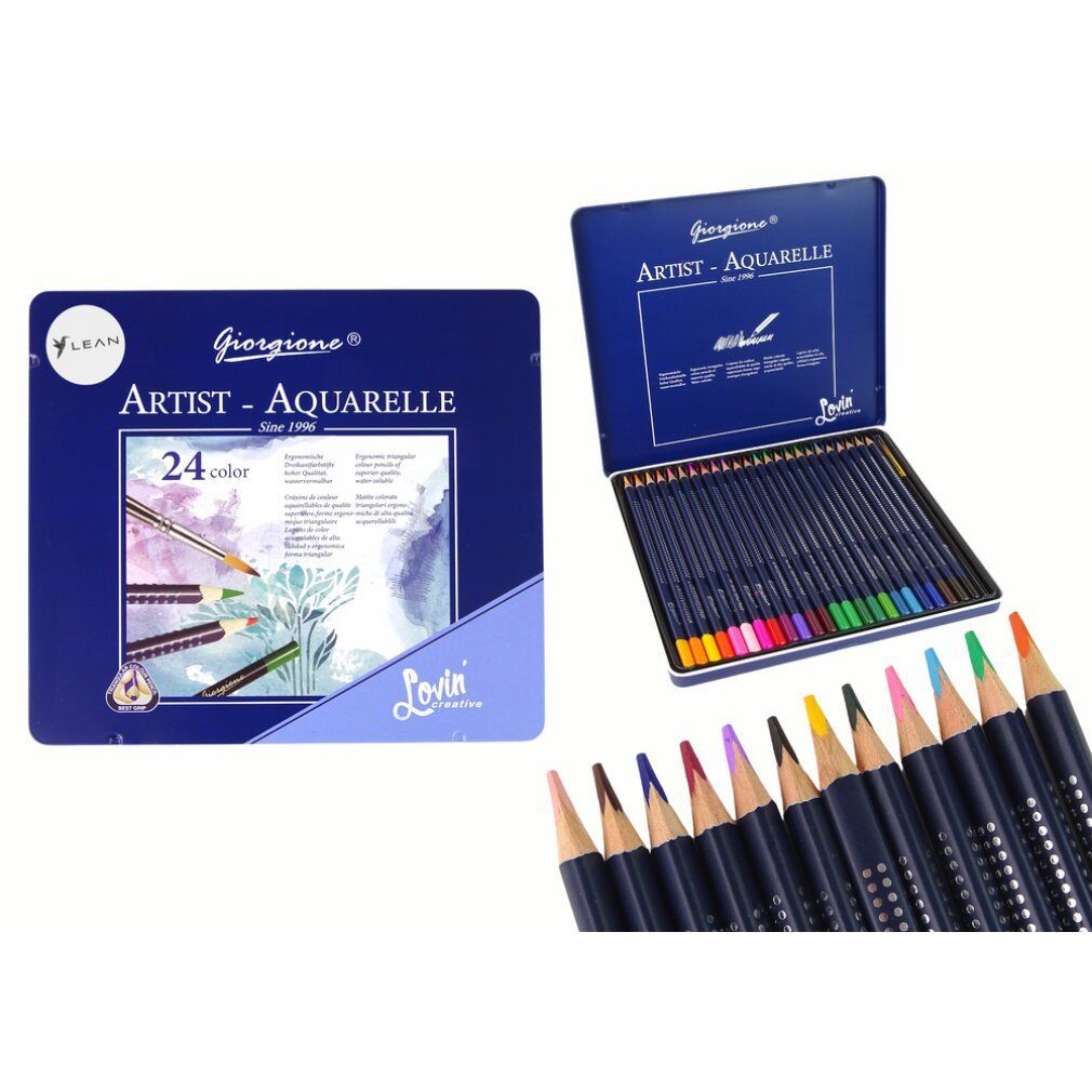 Lean Toys Set mit 24 Aquarellstiften, Metallhalter