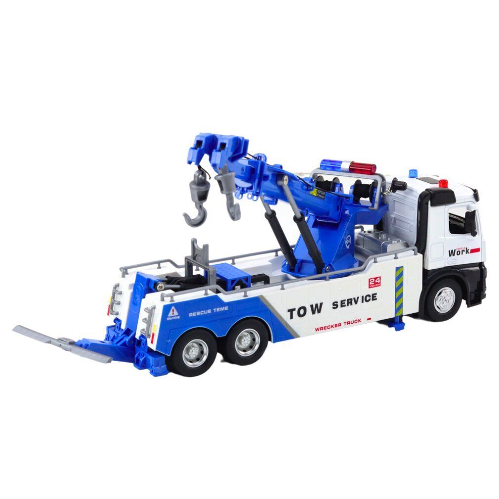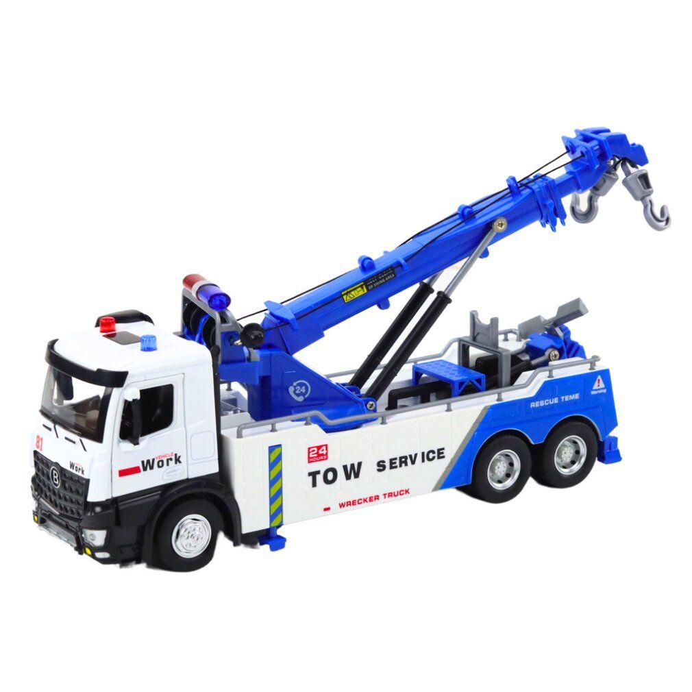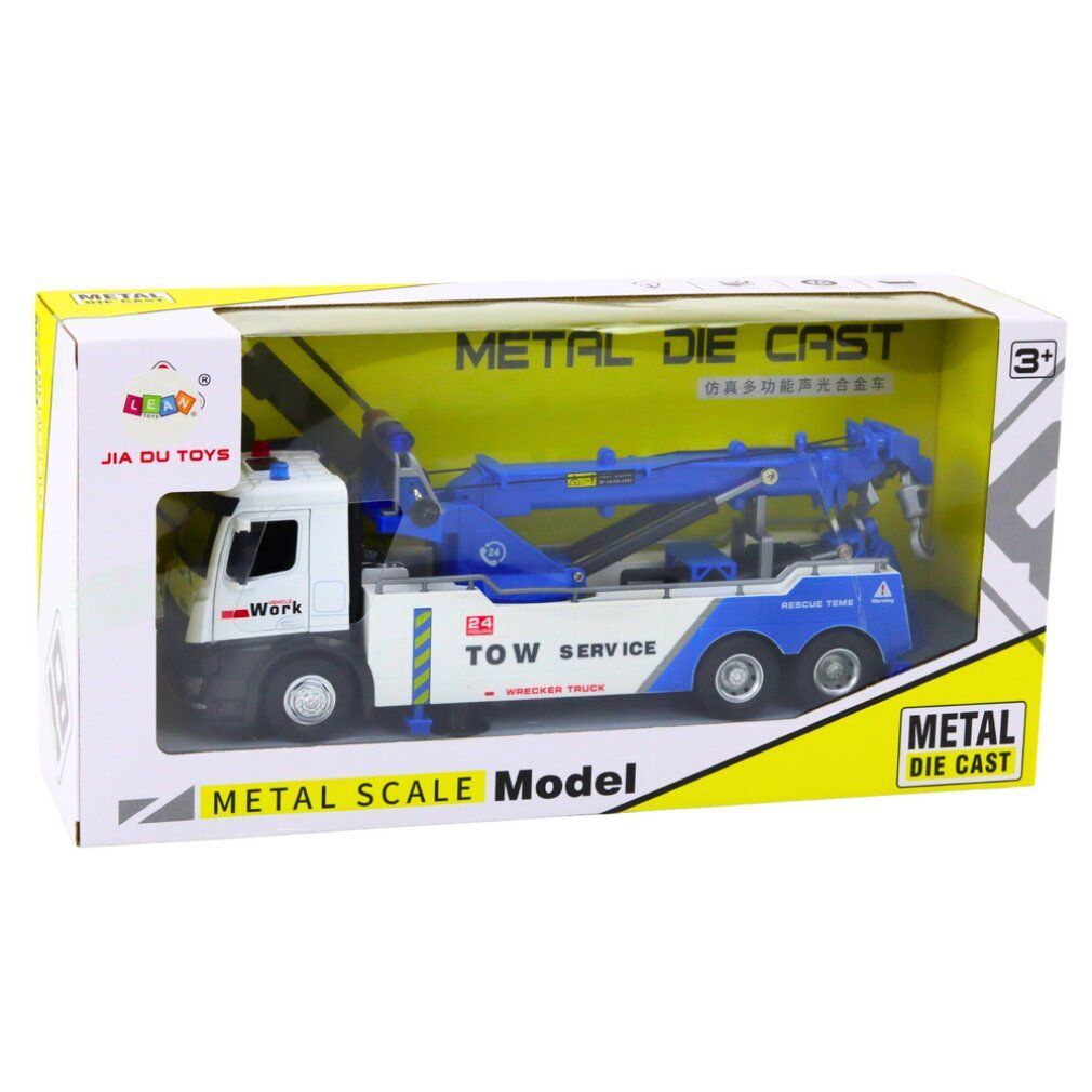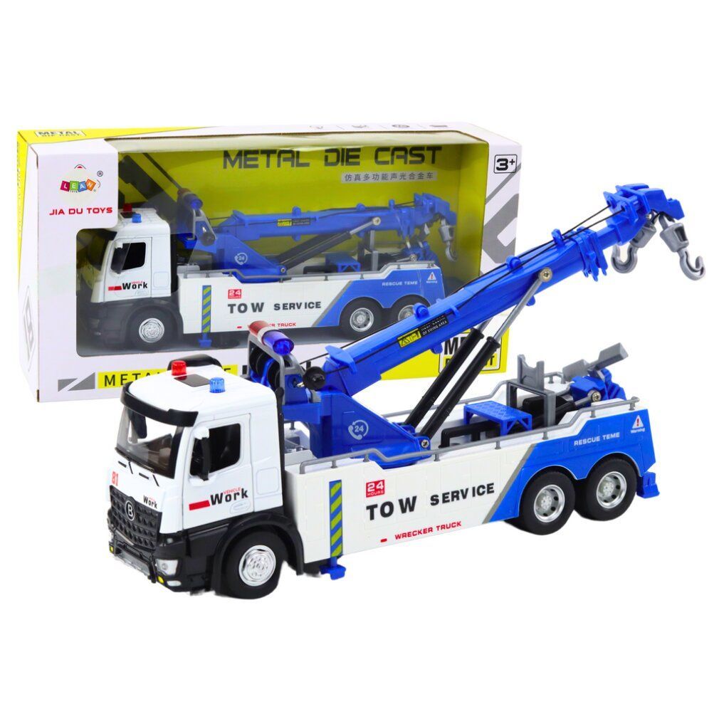 Leantoys Ci??arówka Z D?wigiem Dwa Haki Metalowa Bia?o-Niebieska ?wiat?a D?wi?ki