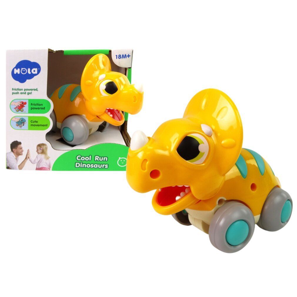 Leantoys Dinosaurier auf Rädern, gelbe Triceratops-Figur