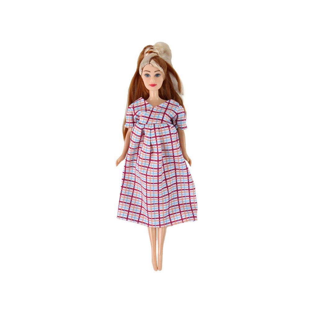 Leantoys Lucy Puppenset schwanger Kinderwagen lange braune Haare