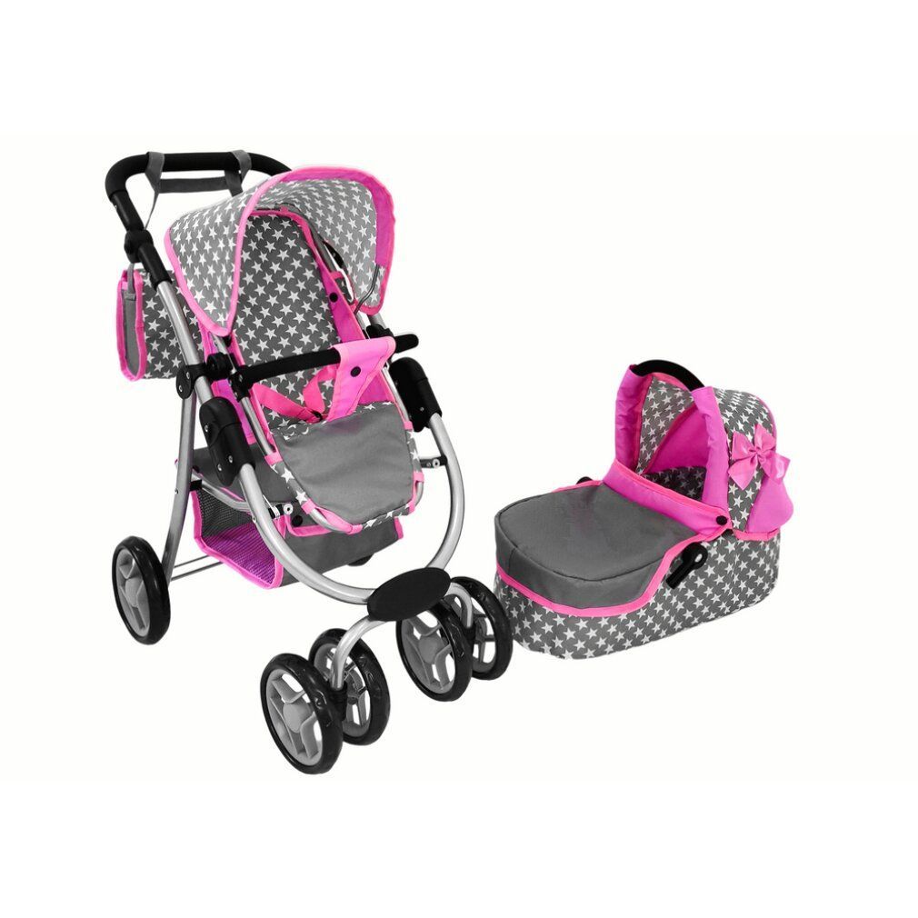 Leantoys Puppenwagen 2 in 1 Tragetasche rosa Sterne