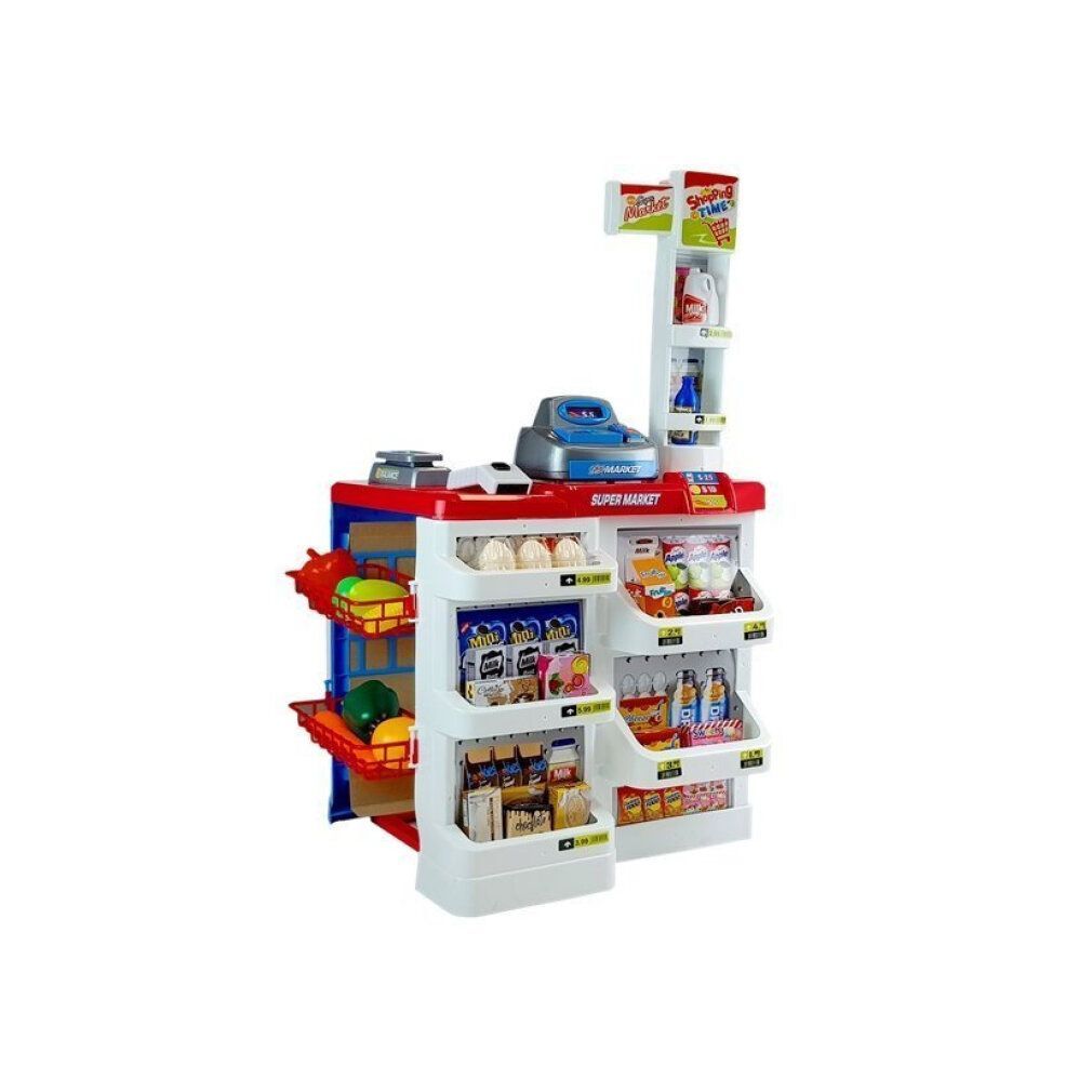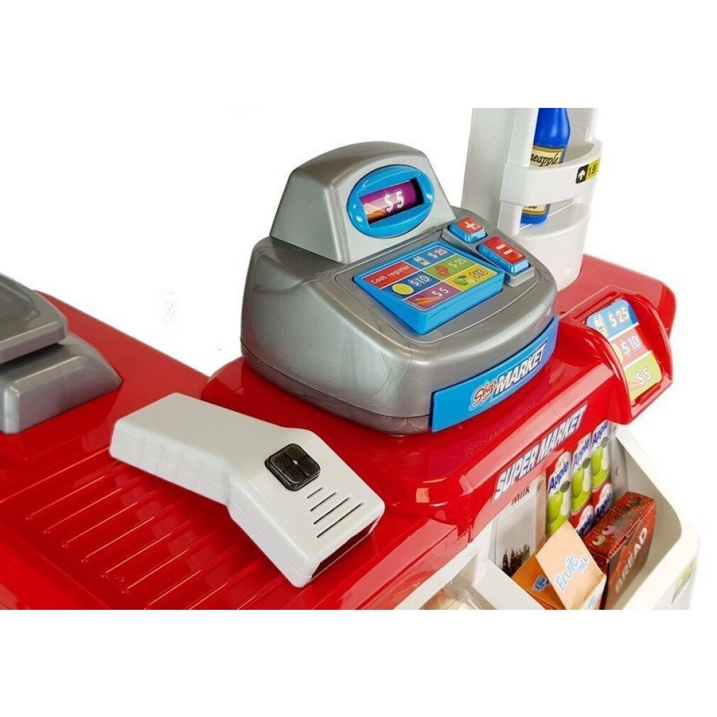 Leantoys Spielwarenmarkt mit Einkaufswagen, Kassenscanner, Einkaufsmöglichkeiten