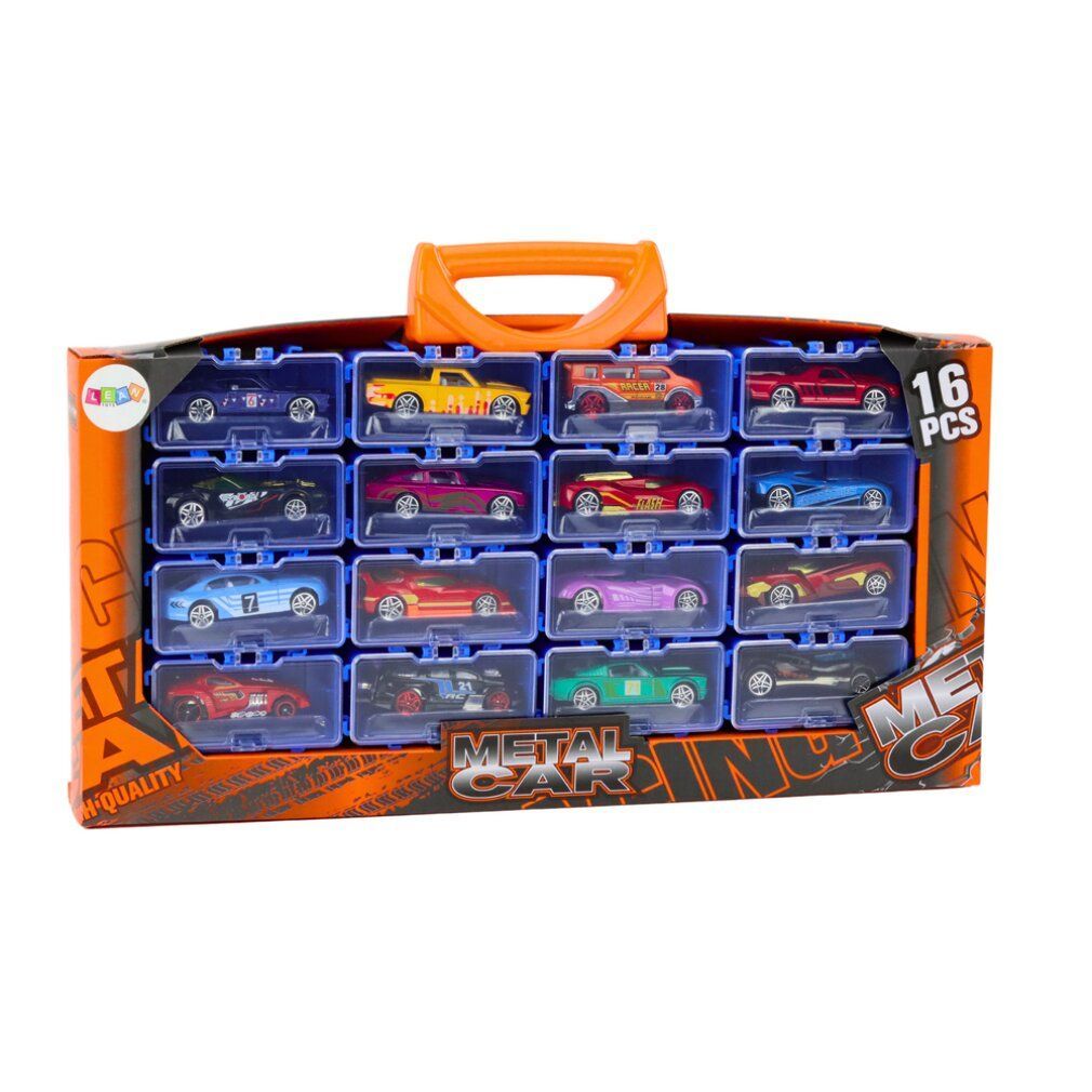 Leantoys Zestaw Autek Resoraków W Walizce Metalowe 16 Sztuk