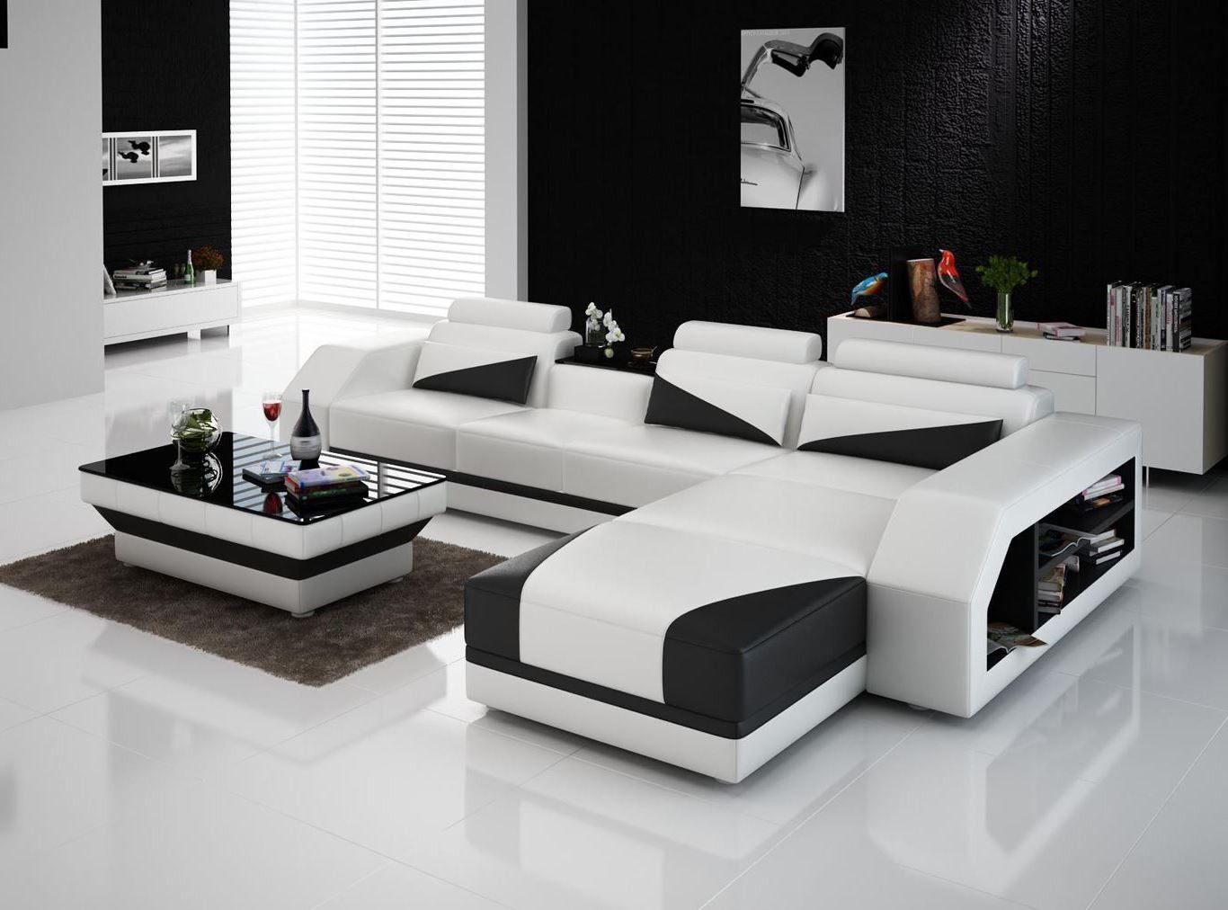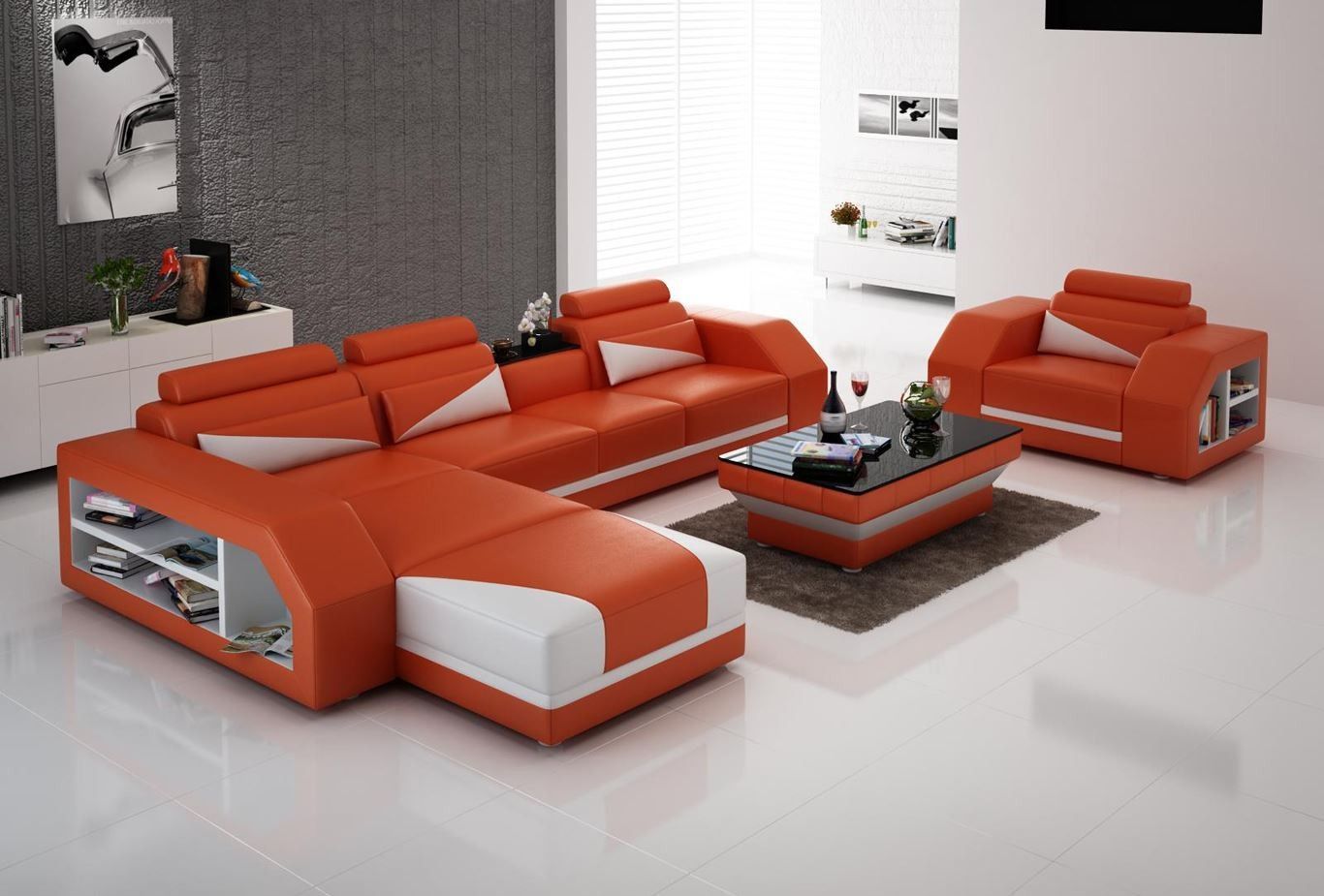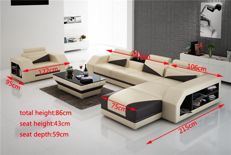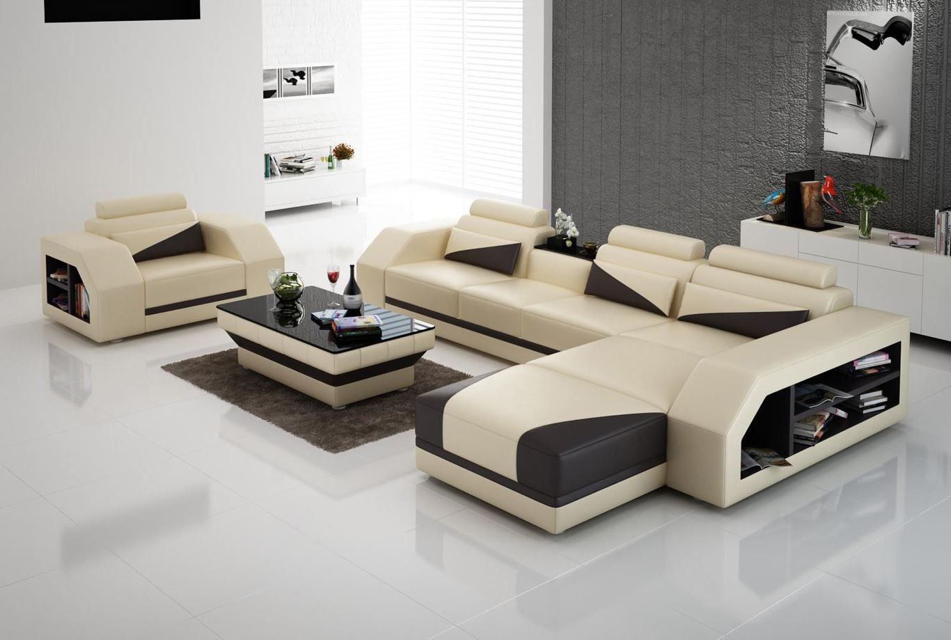 Leather Sofa Living Area Corner L-Shape With Armchair Set Modern New Beige Black