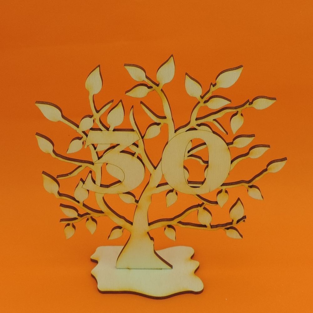 Lebensbaum mit der Zahl 30, inklusive Unterplatte zum Hinstellen. Ein stilvolles und schönes Geschenk zum Geburtstag, zum Hochzeitstag oder für andere Jubiläen. Anzahl: 1 Stück Größe: 14 cm x 16 cm Material: Birkenholz, 3 mm Farbe: natur