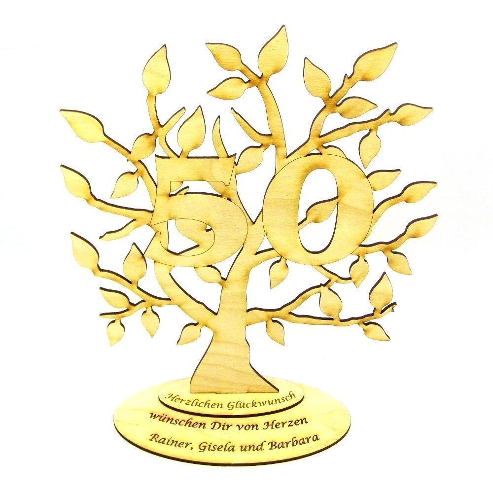 Lebensbaum mit der Zahl 50 und Ihrer Wunschgravur, 28 cm, Holz, Jubiläumsbaum