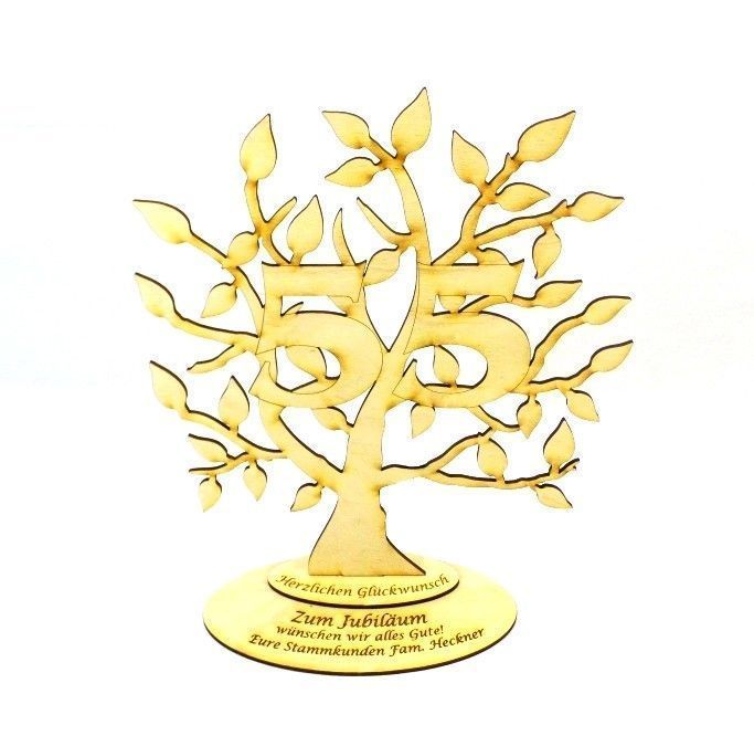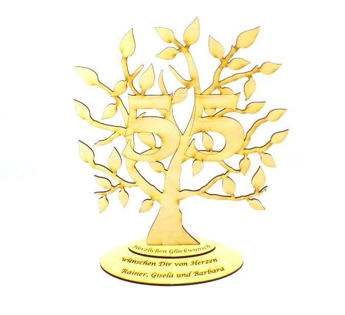 Lebensbaum mit der Zahl 55 und Ihrer Wunschgravur, 28 cm, Holz, Jubiläumsbaum