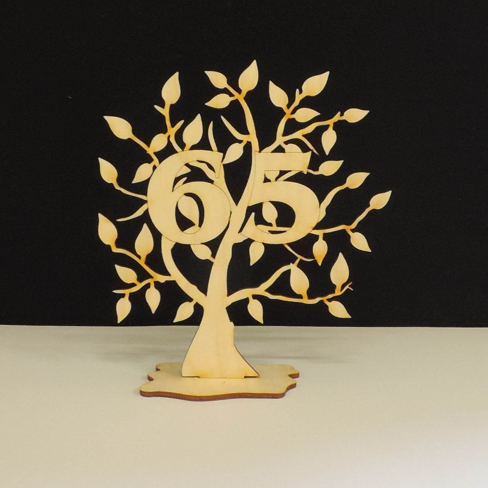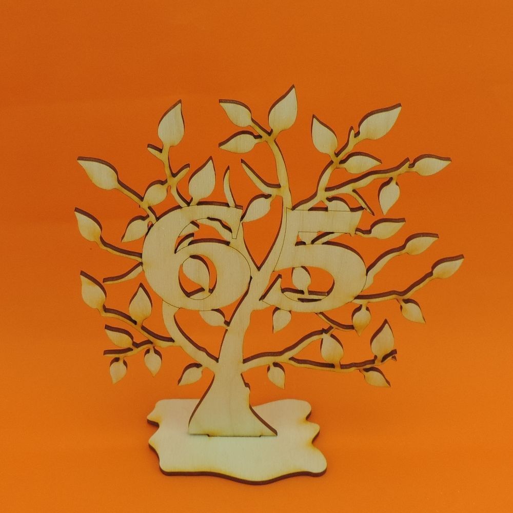 Lebensbaum mit der Zahl 65 aus Holz ,16 cm, Geschenk Jahrestag