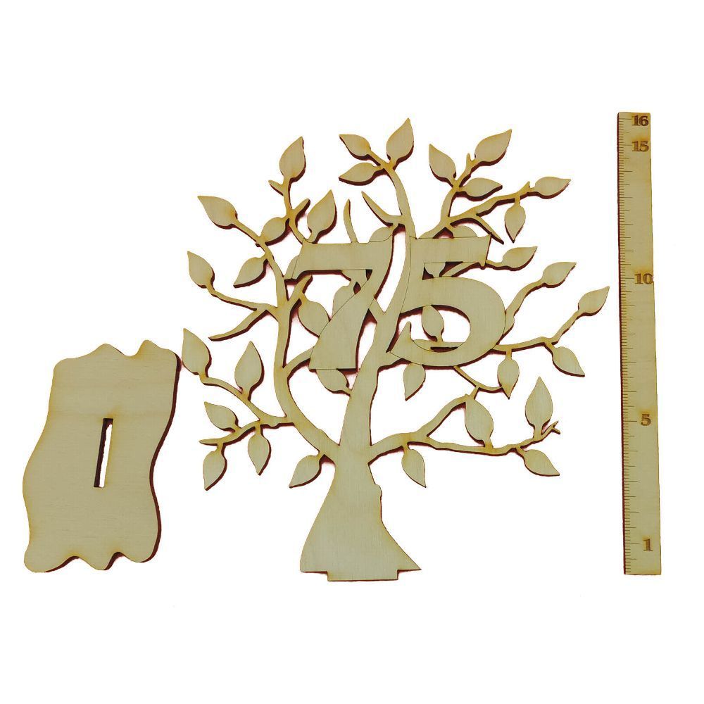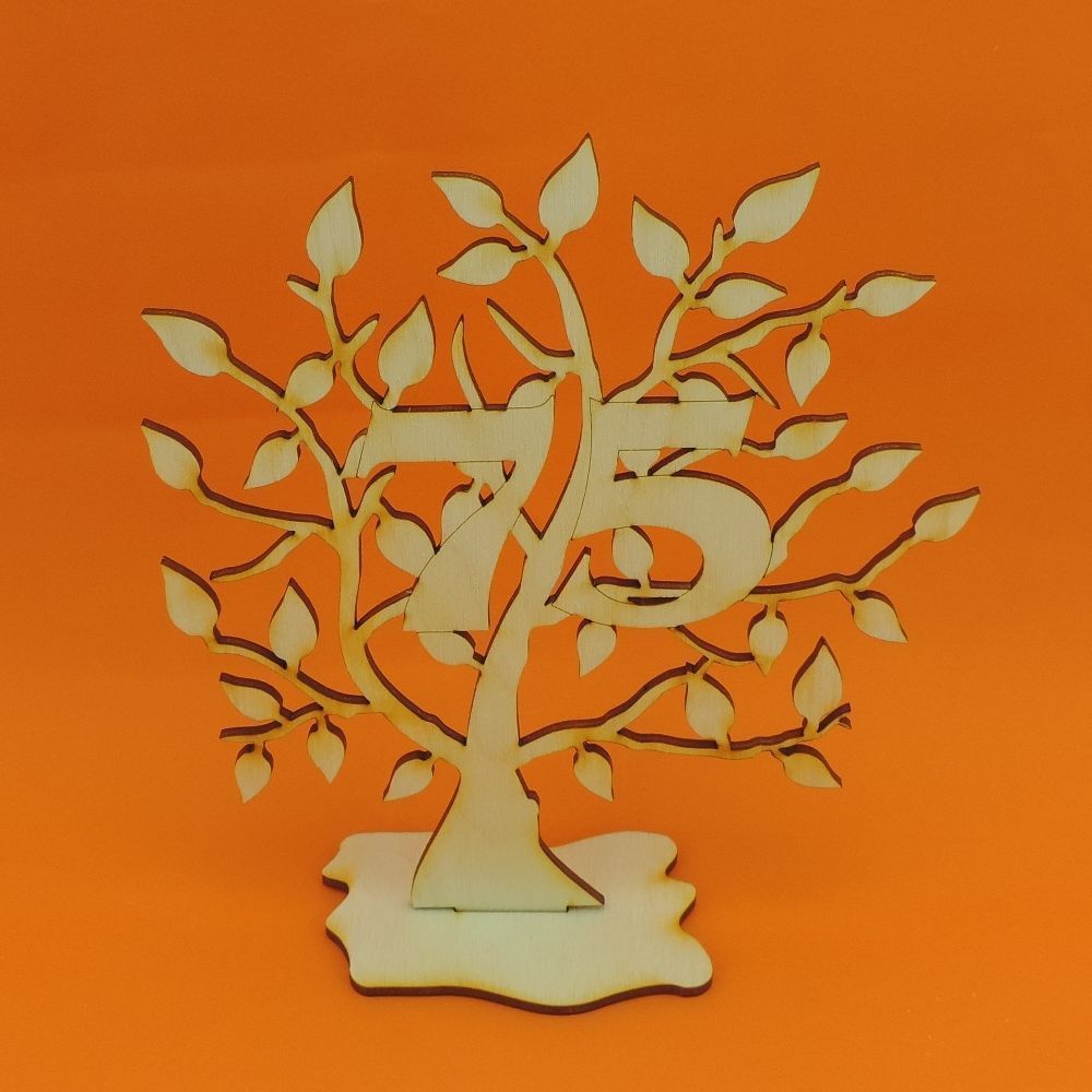 Lebensbaum mit der Zahl 75 aus Holz ,16 cm, Geschenk Jahrestag