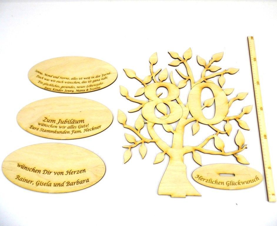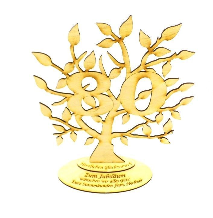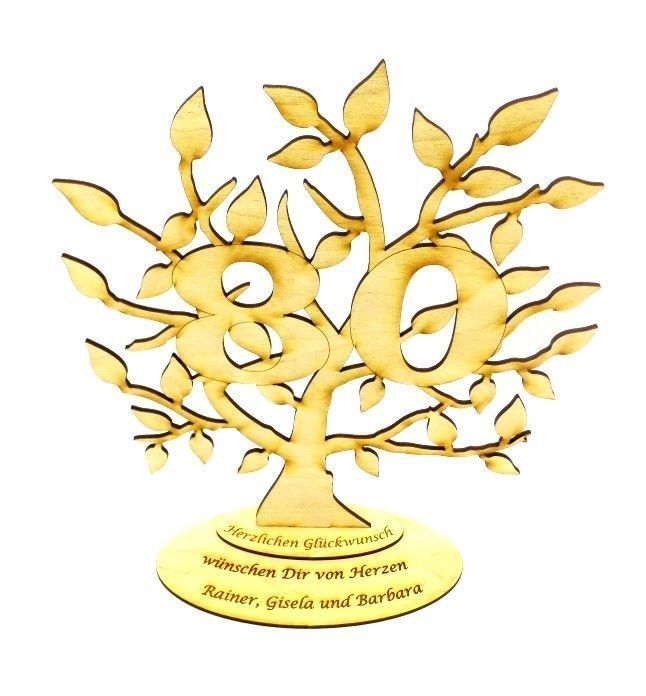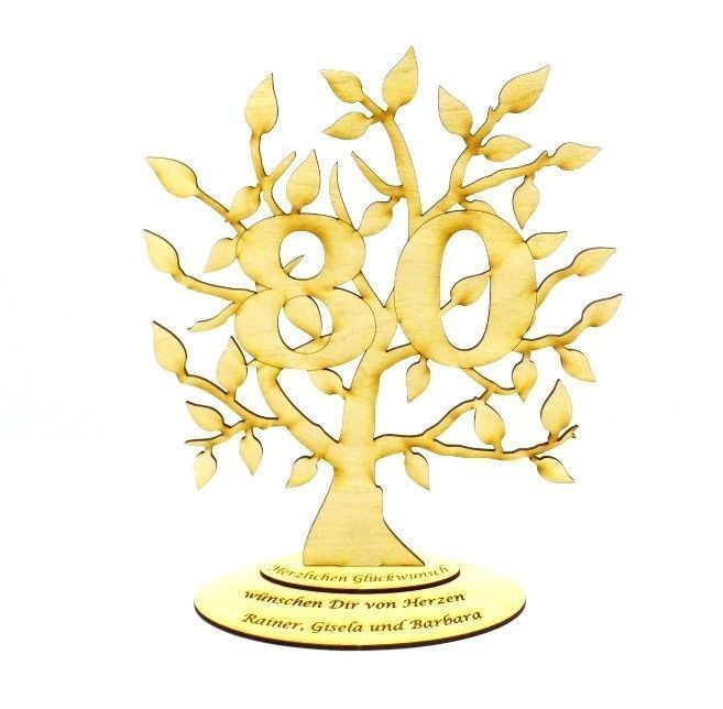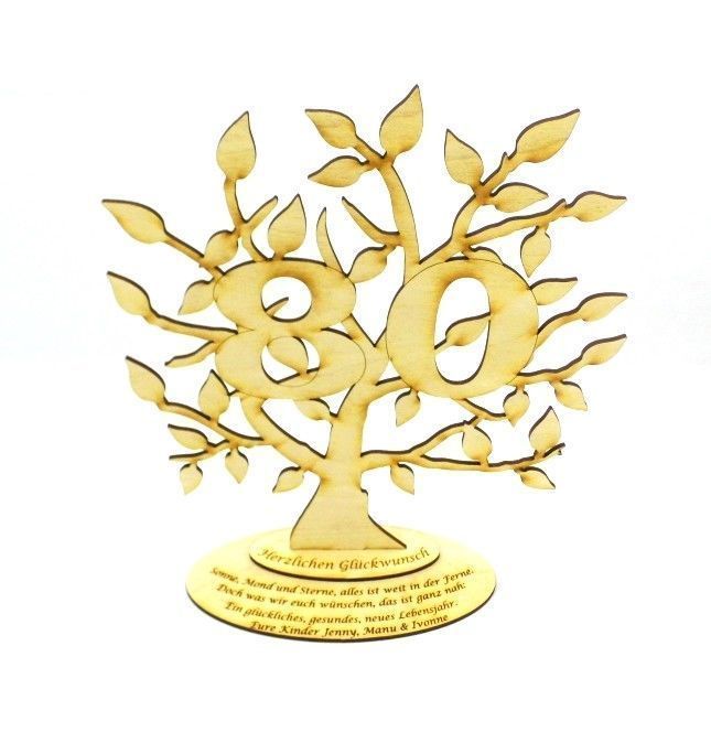 Lebensbaum mit der Zahl 80 und Ihrer Wunschgravur, 28 cm, Holz, Jubiläumsbaum