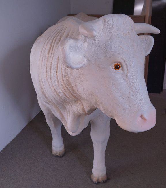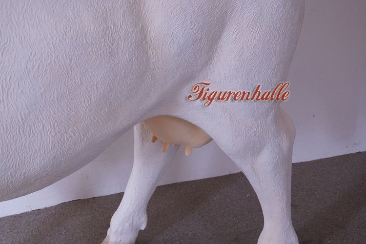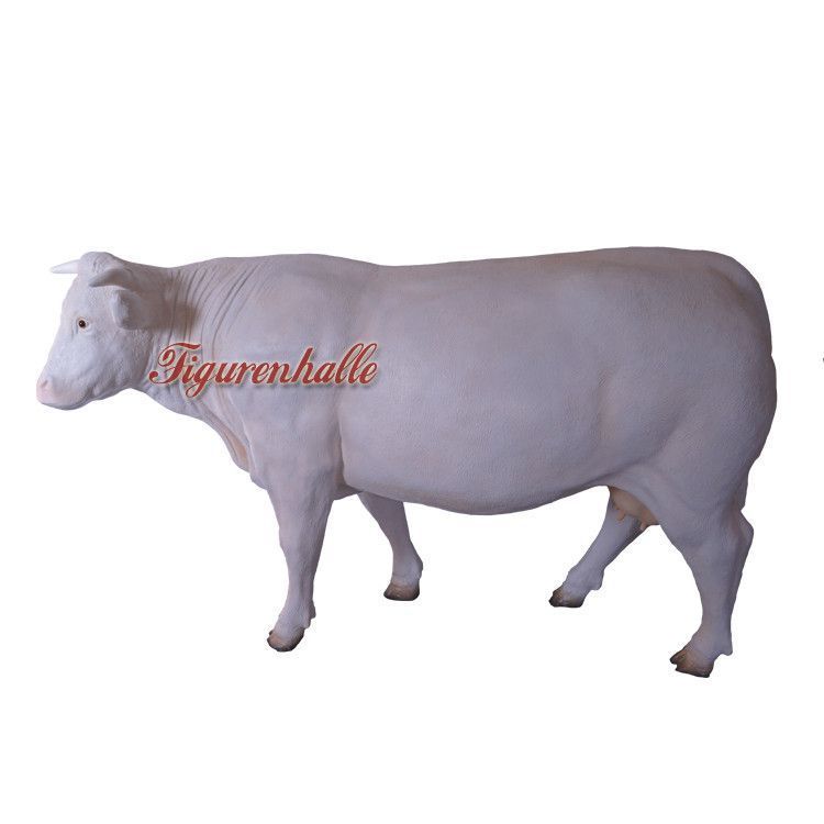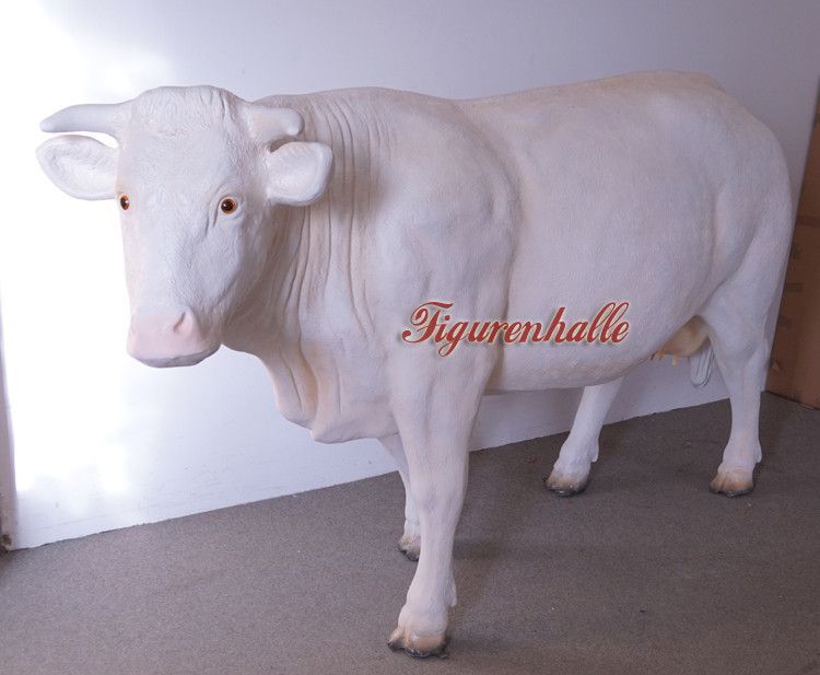 lebensgroße Dekorations Kuh GFK weiß Charolais Rind Figur Bauernhof Dekoration Deko