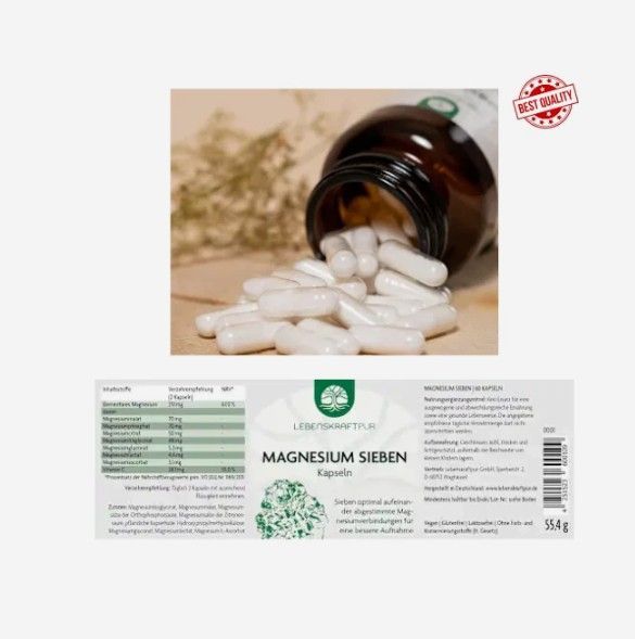 Euro Lebenskraftpur Magnesium Sieben – 60 Kapseln Premium-Magnesium-Komplex mit 7 Formen – Für Muskeln, Nerven & Energie Euro Warum Magnesium Sieben von LebenskraftpurEuro Magnesium ist ein lebenswichtiges Mineral – unverzichtbar für Muskeln, Nerven, Herzfunktion und Energiesto