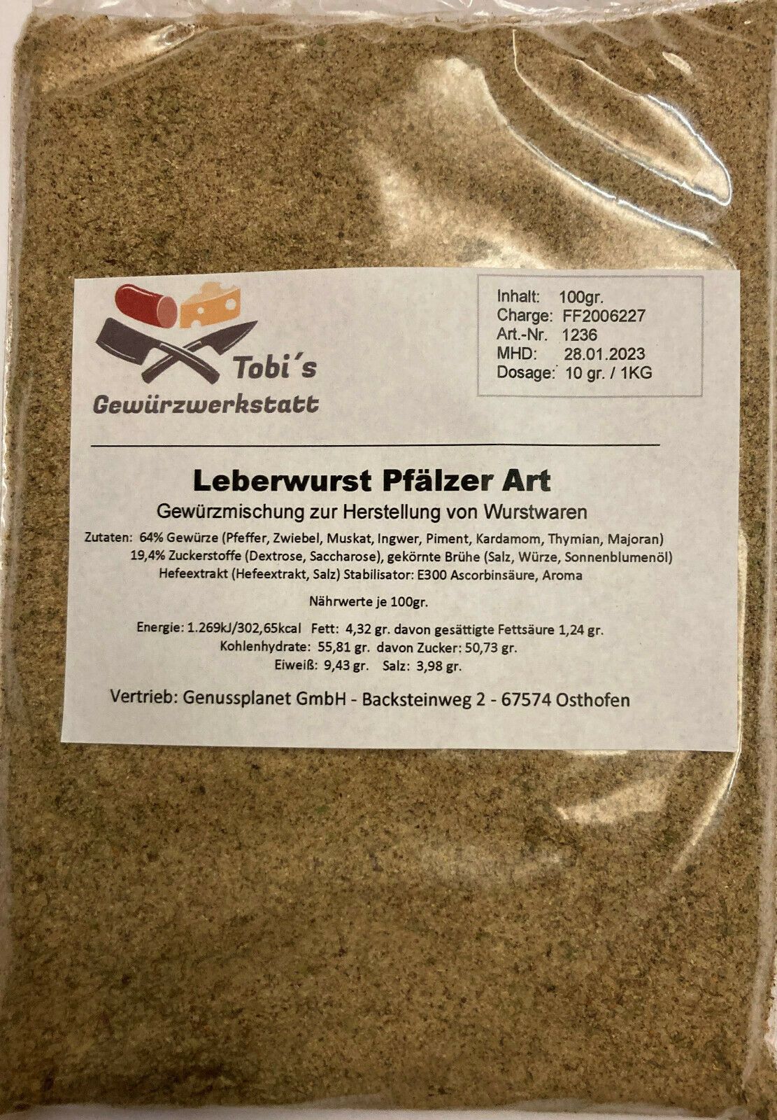 Leberwurst Pfälzer Art Gewürzmischung 100gr. Wurstherstellung ohne Pökelsalz