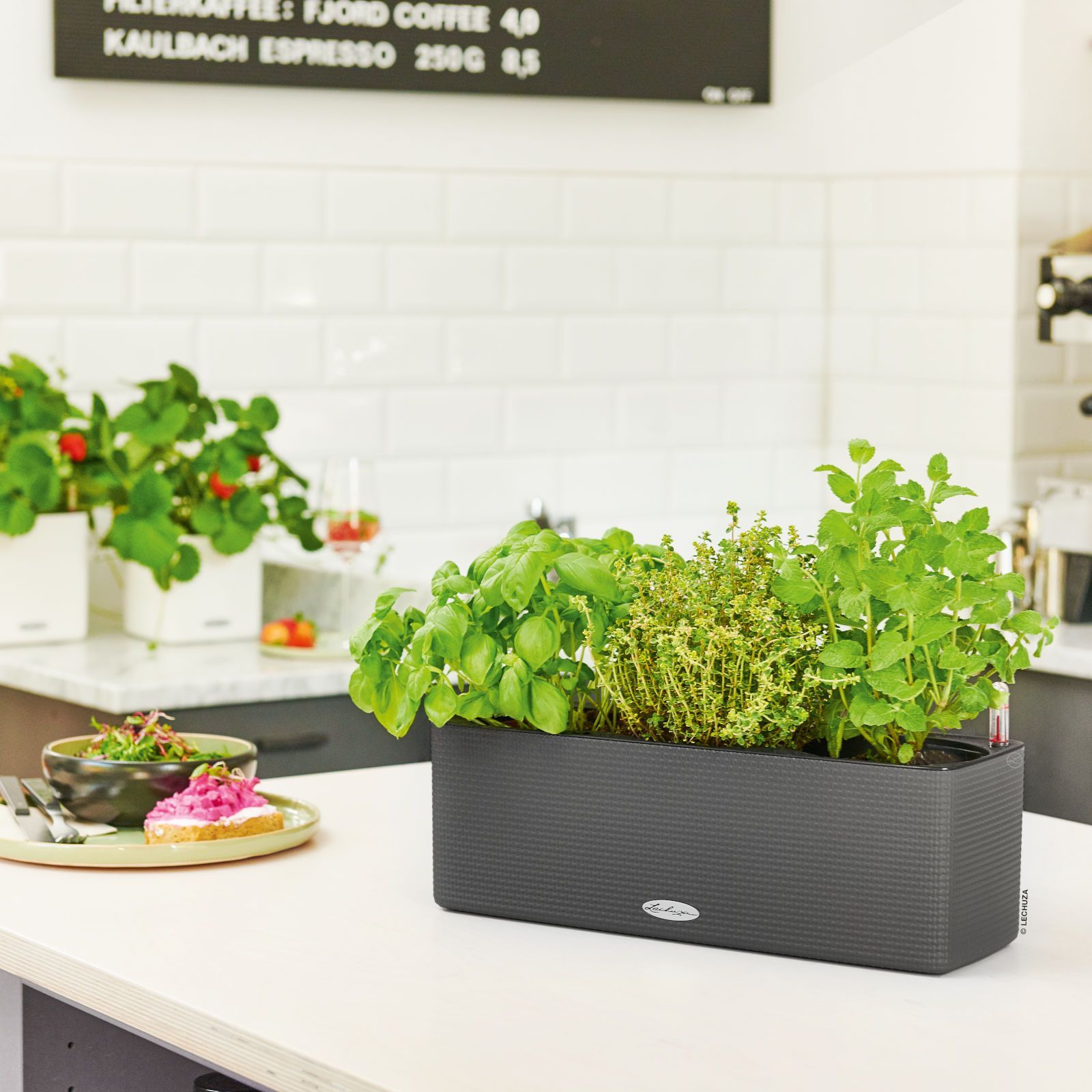 Lechuza Lechuza Cube-Triple Blumenkasten, schiefergrau - inkl. WMF Kräuterschere