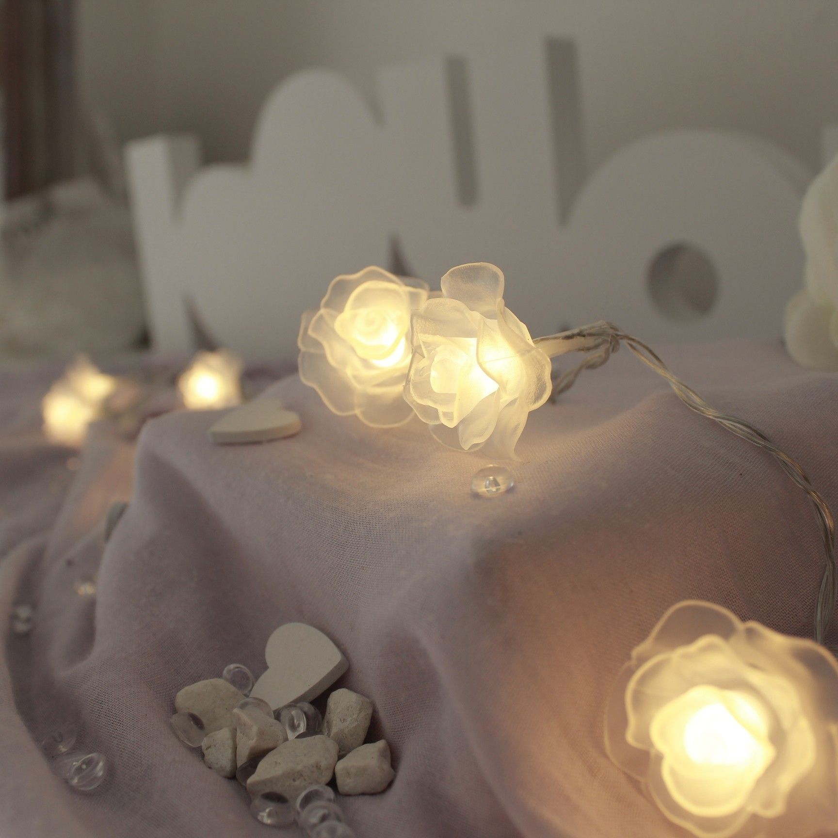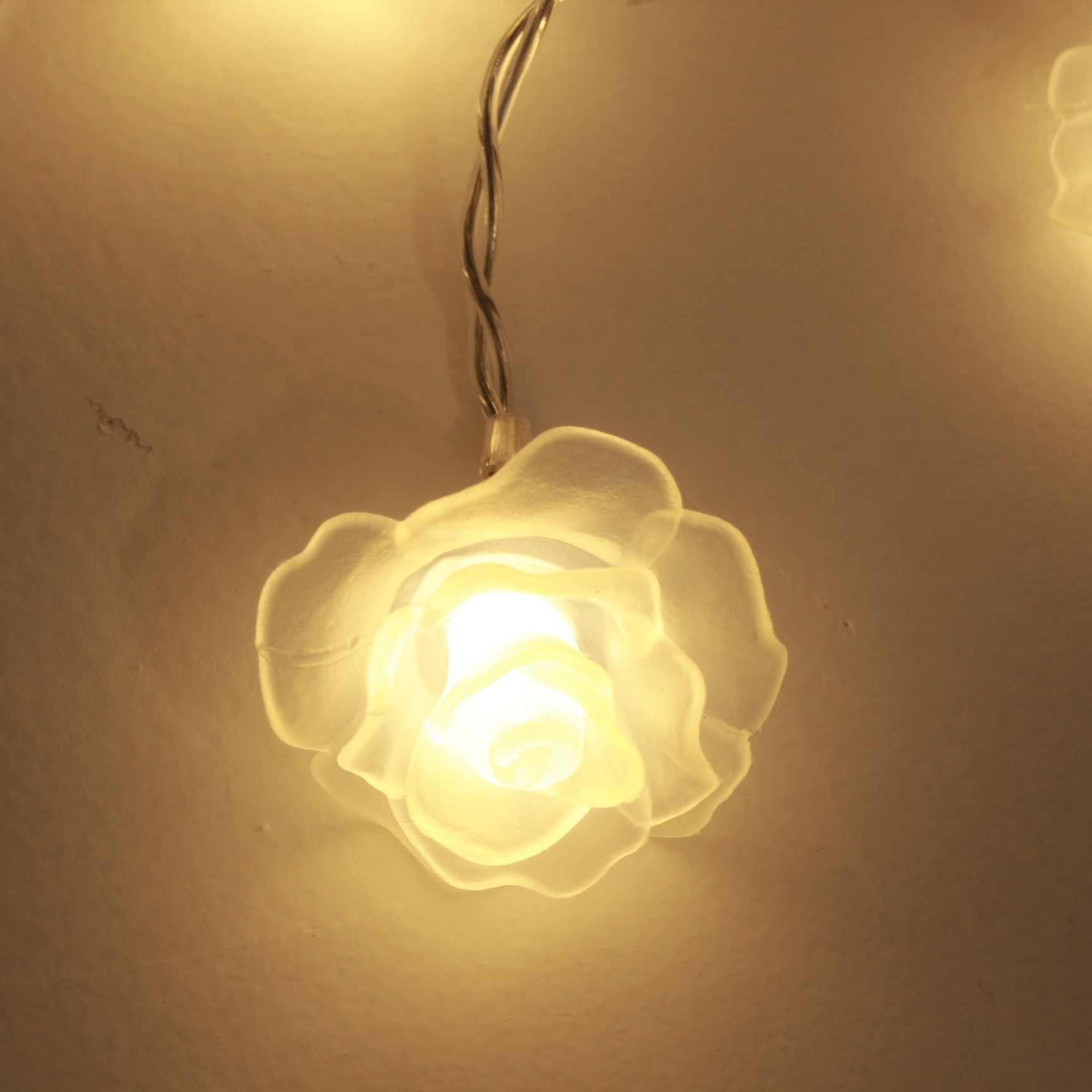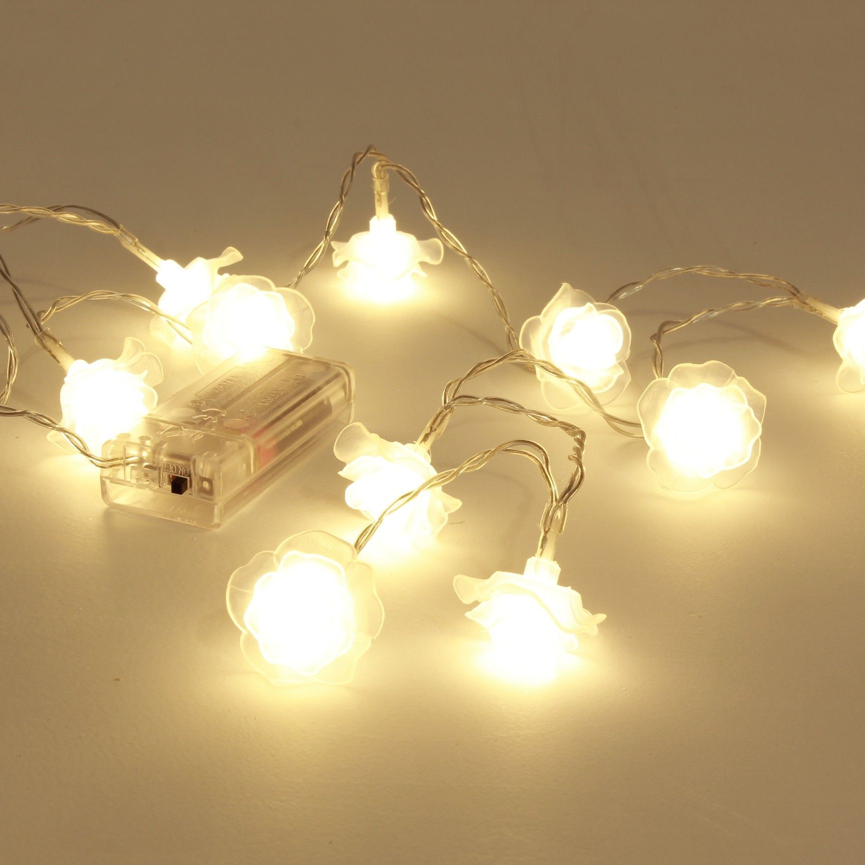 Lichterkette Rosenblüten 10er Lichterkette Länge: 120 cm Blütengröße: 3,5 cm inklusive Batterien: 2xAA Hübsche Lichterkette in Rosenblütenform. Vielseitig verwendbar wie Hochzeit, Geburtstag oder Tischdeko