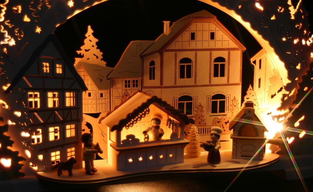 LED 3D-Räucher-Schwibbogen exclusiv 53cm Weihnachtsbäckerei Erzgebirge Lichterbogen