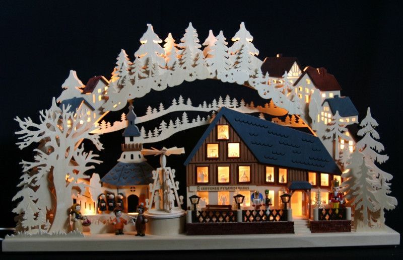 LED 3D-Schwibbogen 72x43 Pyramidenhaus mit elektrischer Pyramide Erzgebirge