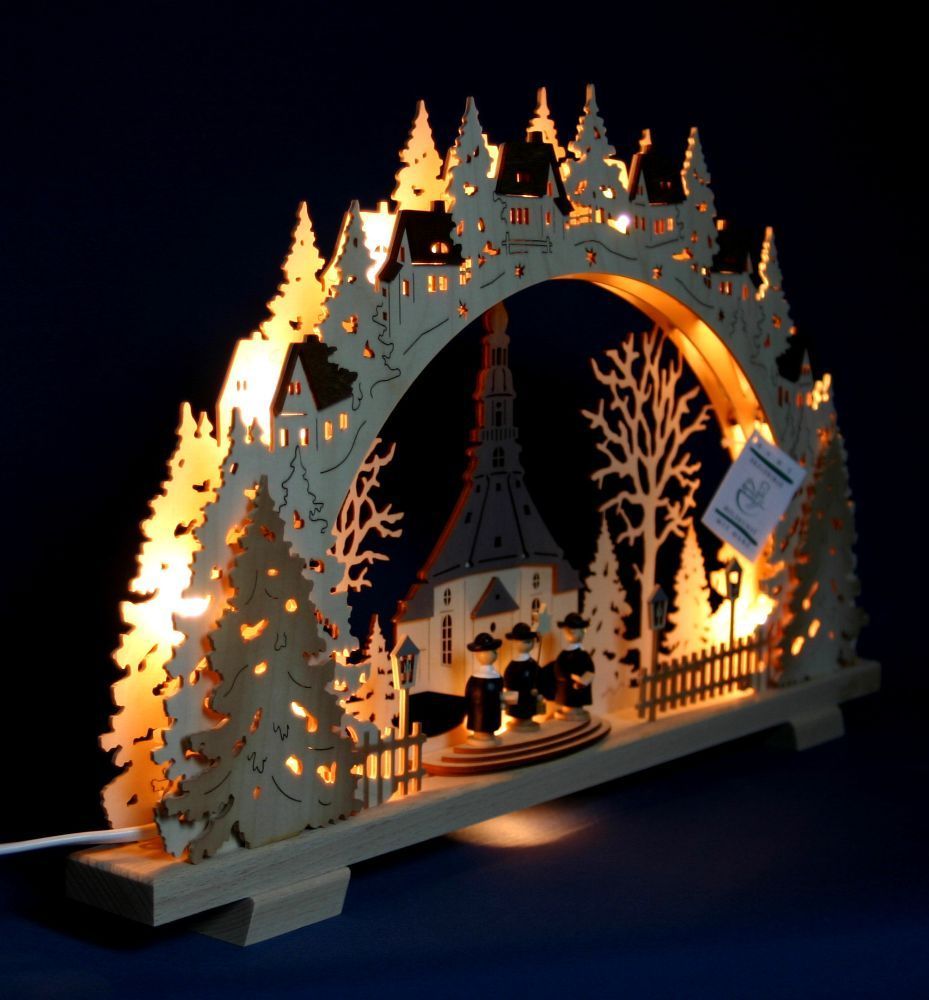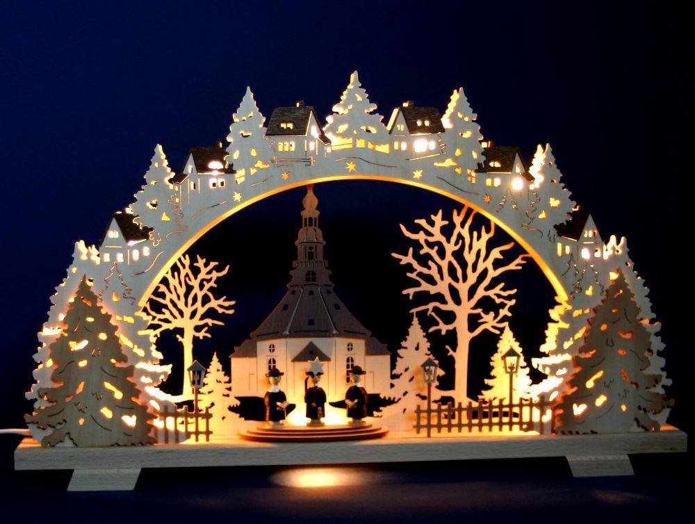 LED 3D-Schwibbogen Seiffner Kirche 52cm Erzgebirge Lichterbogen Weihnachten Holz