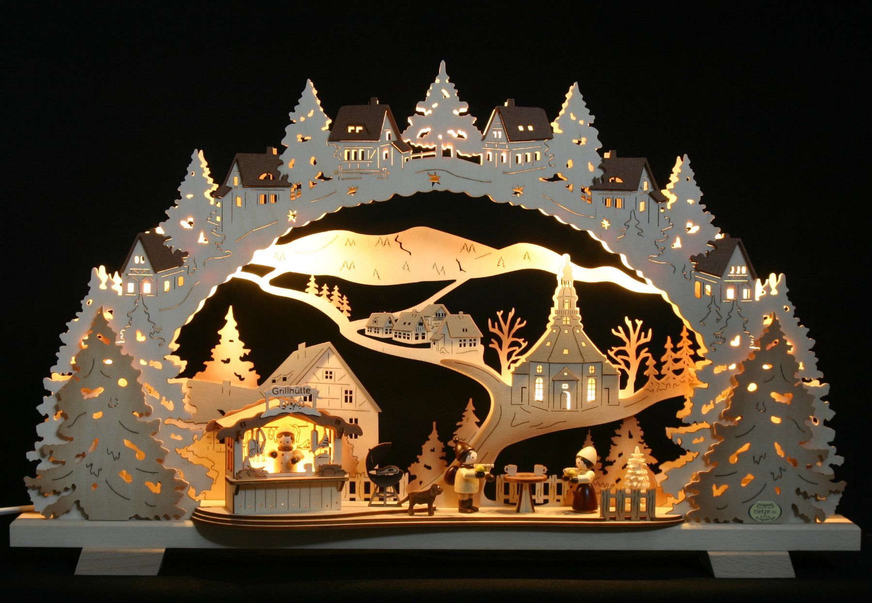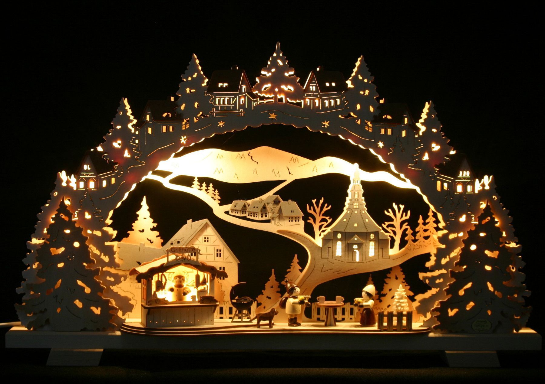 LED 3D-Schwibbogen Weihnachtsmarkt Seiffen mit Grillhütte Erzgebirge Fachhandel