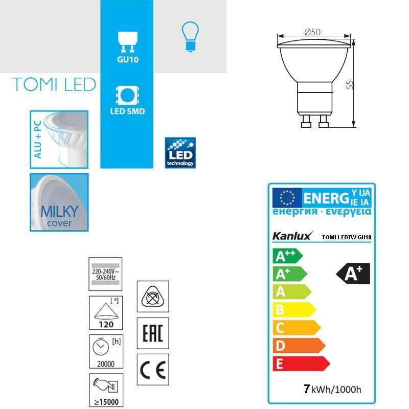 Kanlux LED 7W SMD Spot, GU10 Strahler kaltweiss 4000 K, LED Lampe, LED-Licht 510Lm
