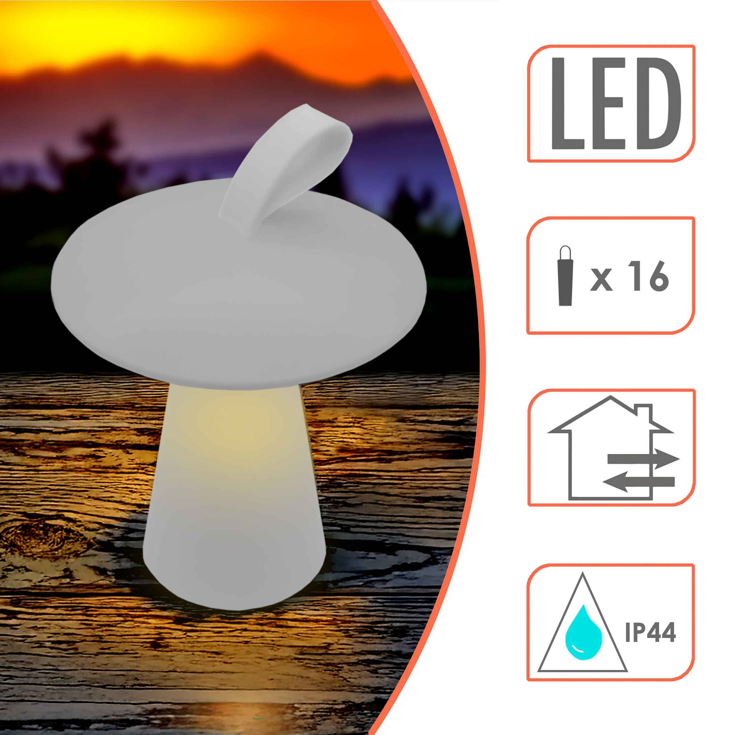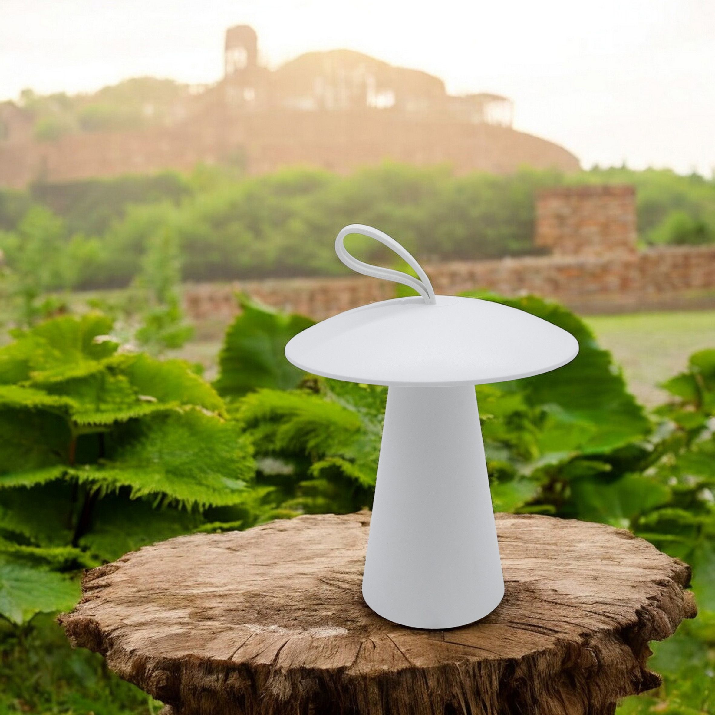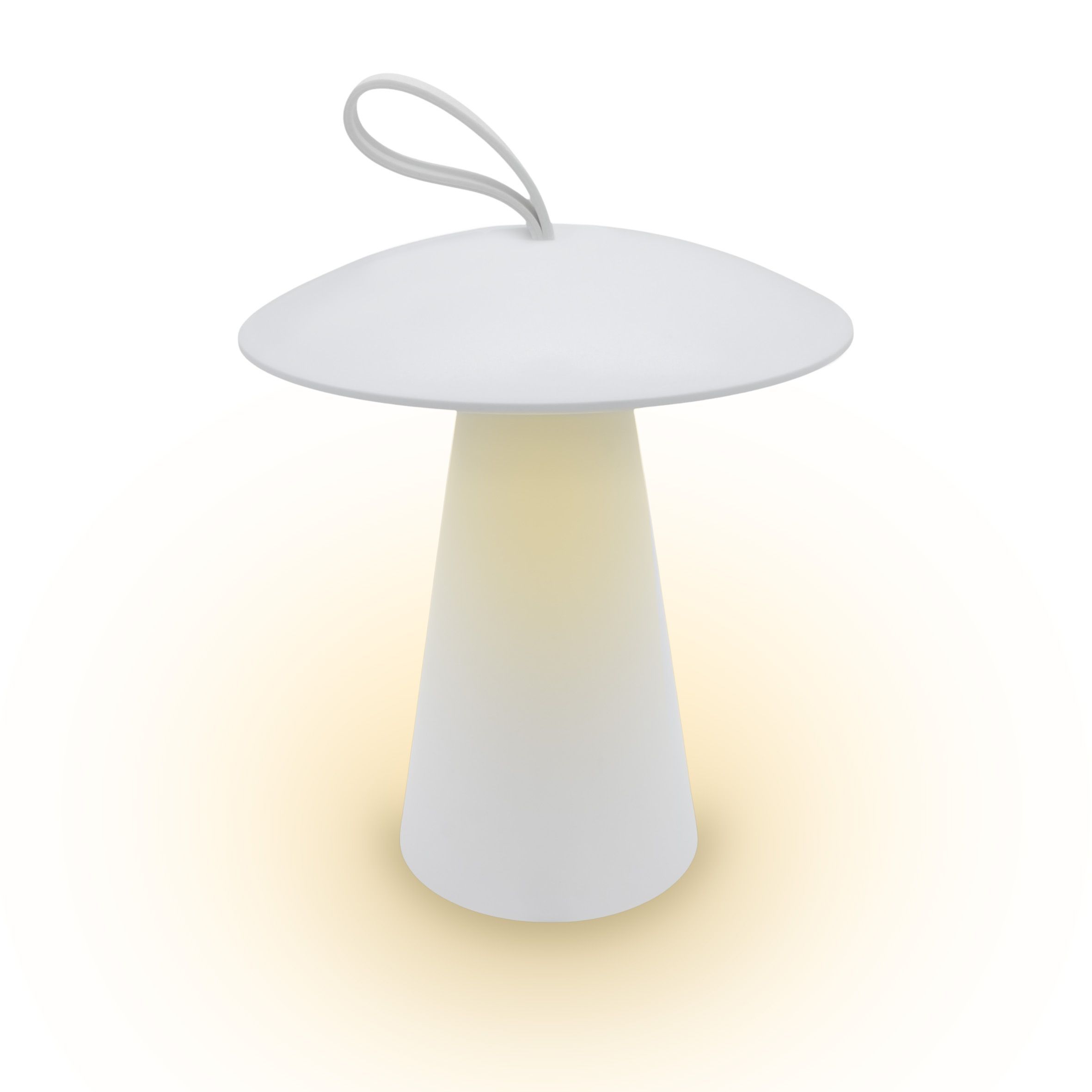 Kleine dekorative weiße Gartenleuchte in Pilz-Form mit 16 LED in warm weiß Akku betrieben