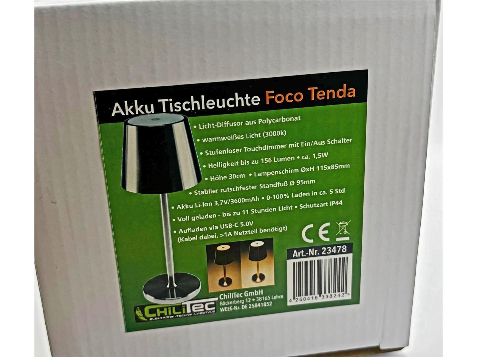 ChiliTec LED Akku-Tischleuchte "Foco Tenda" 2900K, IP44, Touchschalter, 30cm
