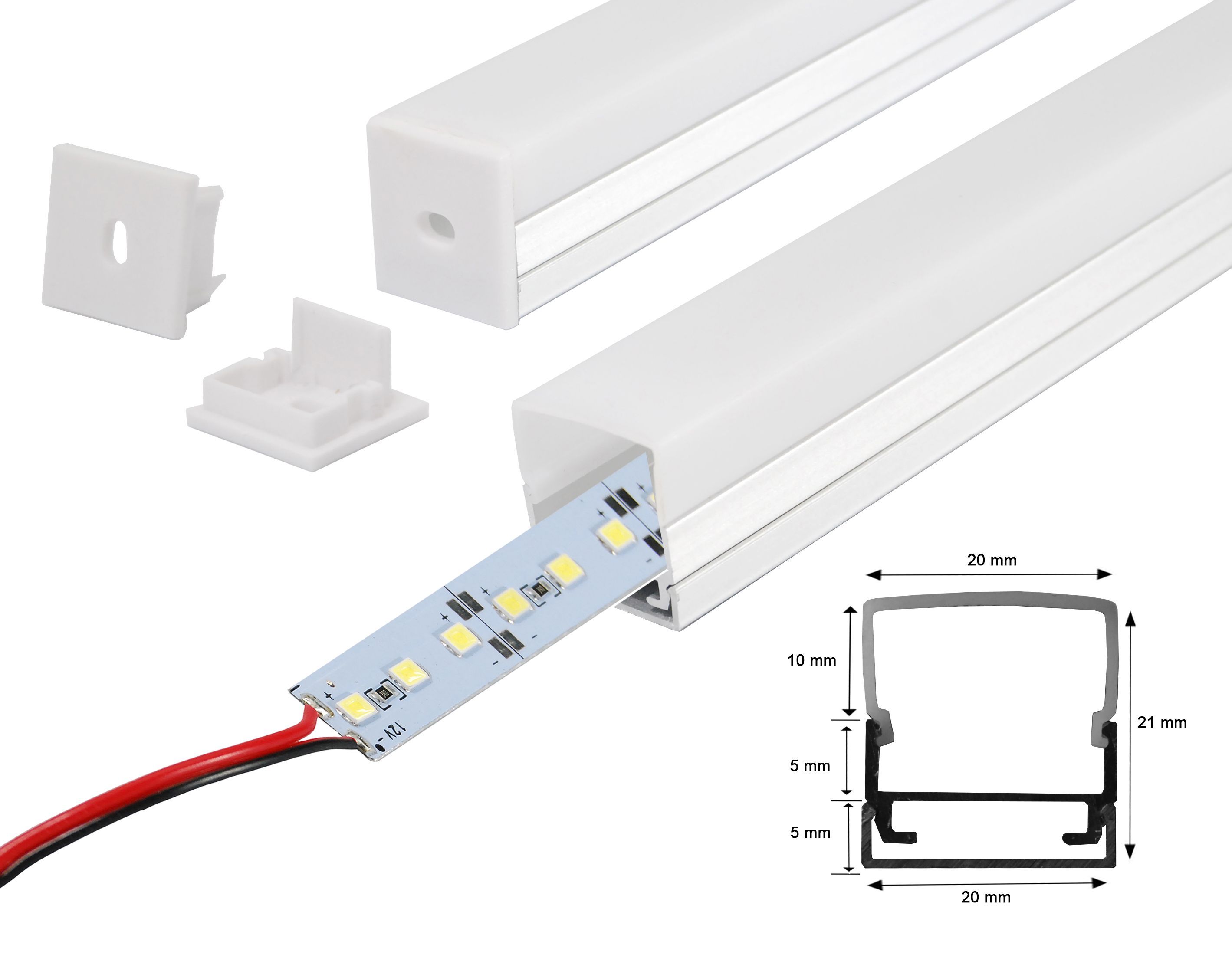 LED Alu Profil SchieneAluminium Leiste Milchgalas Abdeckung inkl. Alu Strip 1 Meter