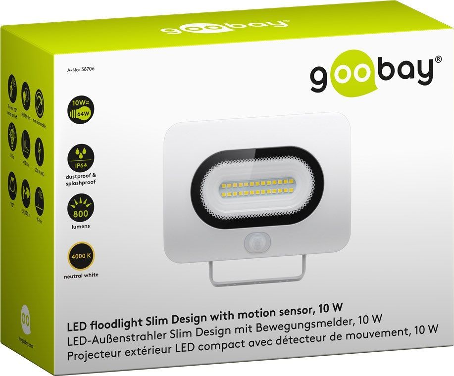 Goobay LED - Außenstrahler, 10 W, Slim Design, mit Bewegungsmelder, Weiß